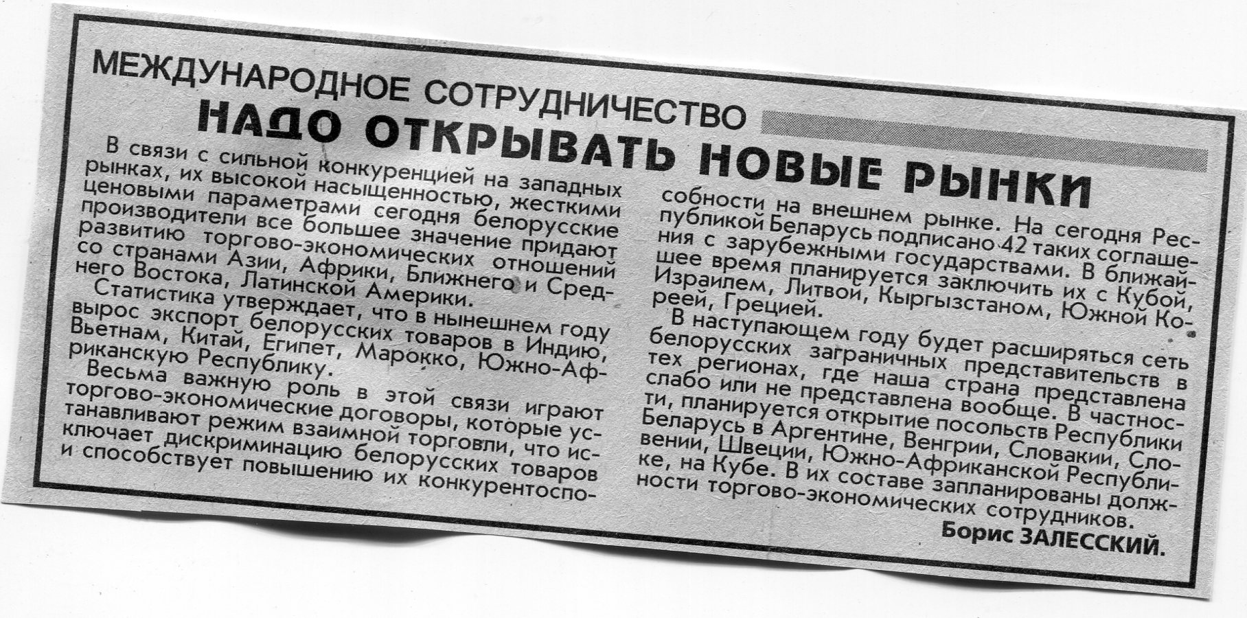 Залесский, Б. Надо открывать новые рынки / Б. Залесский // Вечерний Минск. - 1998. - 18 дек.