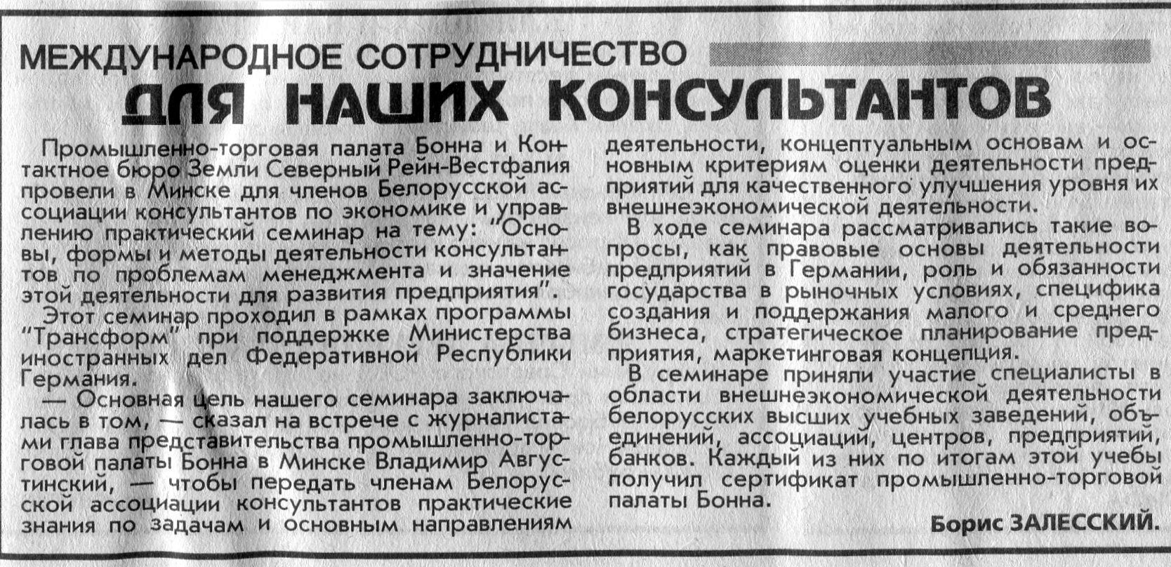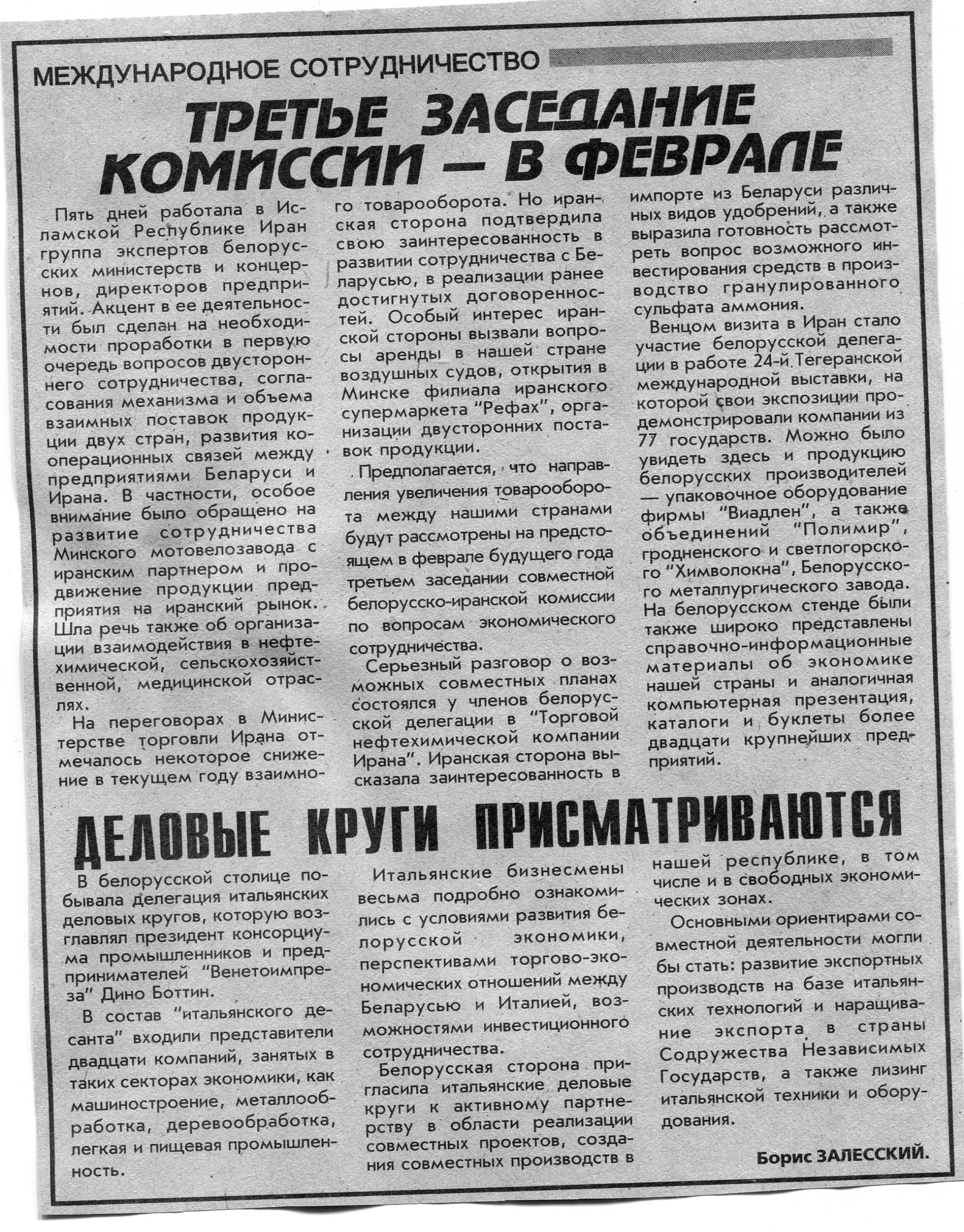 Залесский, Б. Международное сотрудничество / Б. Залесский // Вечерний Минск. - 1998. - 30 дек.