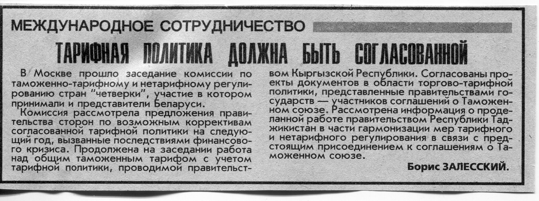 Залесский, Б. Тарифная политика должна быть согласованной / Б. Залесский // Вечерний Минск. - 1998. - 24 нояб.