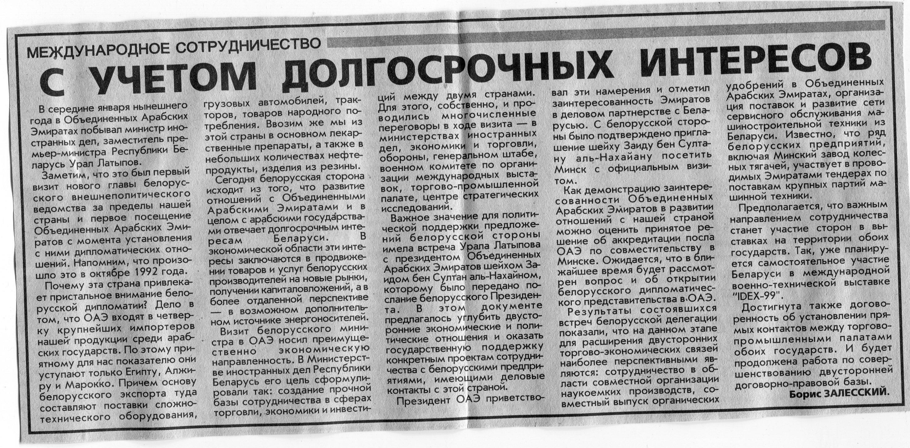 Залесский, Б. С учетом долгосрочных интересов / Б. Залесский // Вечерний Минск. - 1999. - 4 февр.