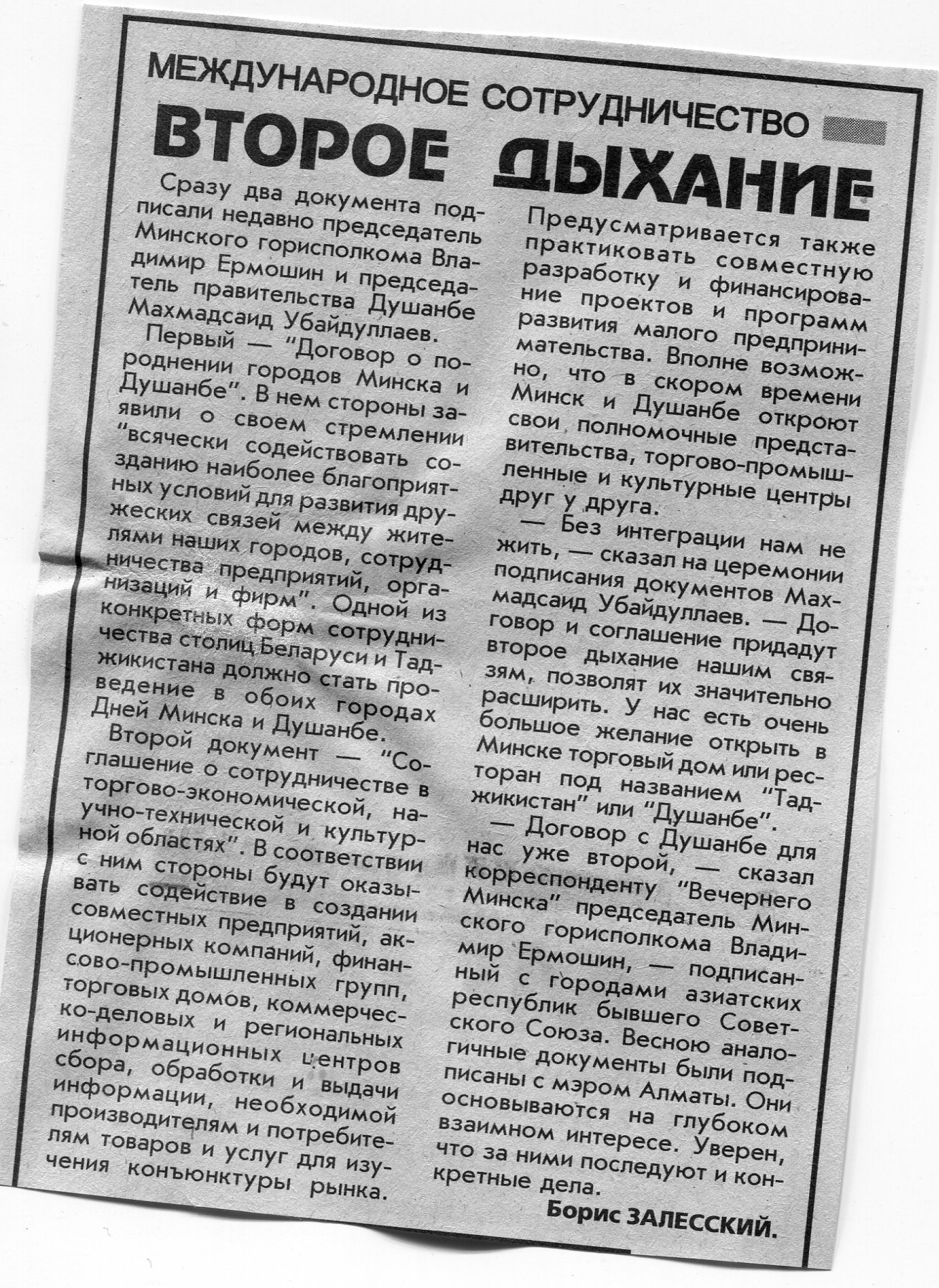 Залесский, Б. Международное сотрудничество / Б. Залесский // Вечерний Минск. - 1998. - 2 окт.