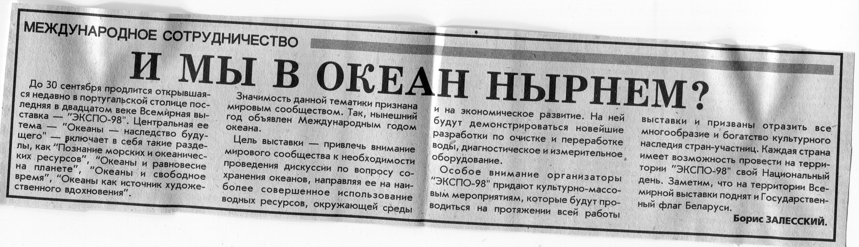 Залесский, Б. И мы в океан нырнем? / Б. Залесский // Вечерний Минск. - 1998. - 10 окт.