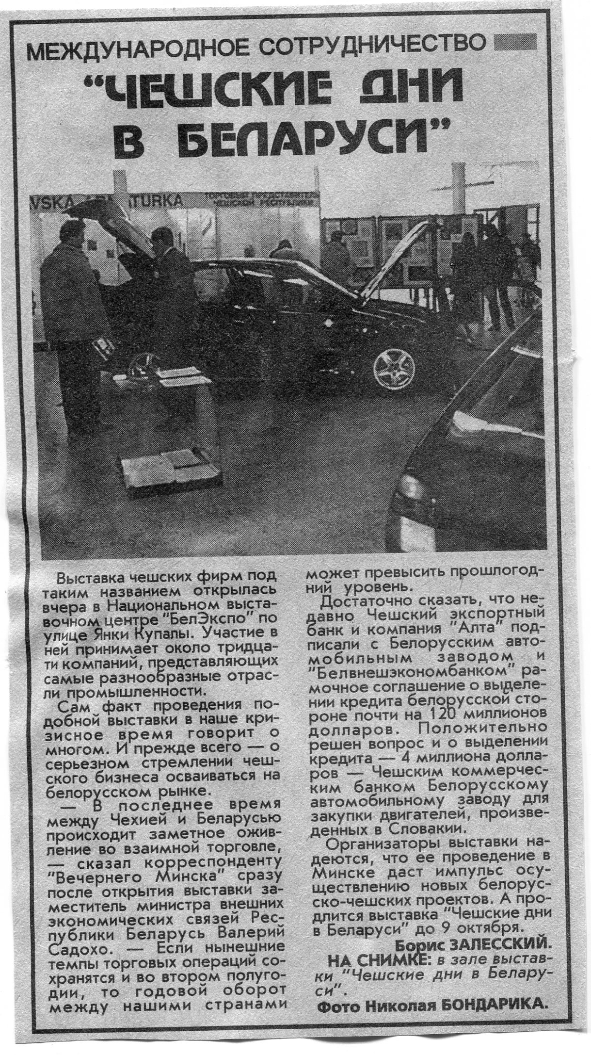Залесский, Б. "Чешские дни в Беларуси" / Б. Залесский // Вечерний Минск. - 1998. - 7 окт.