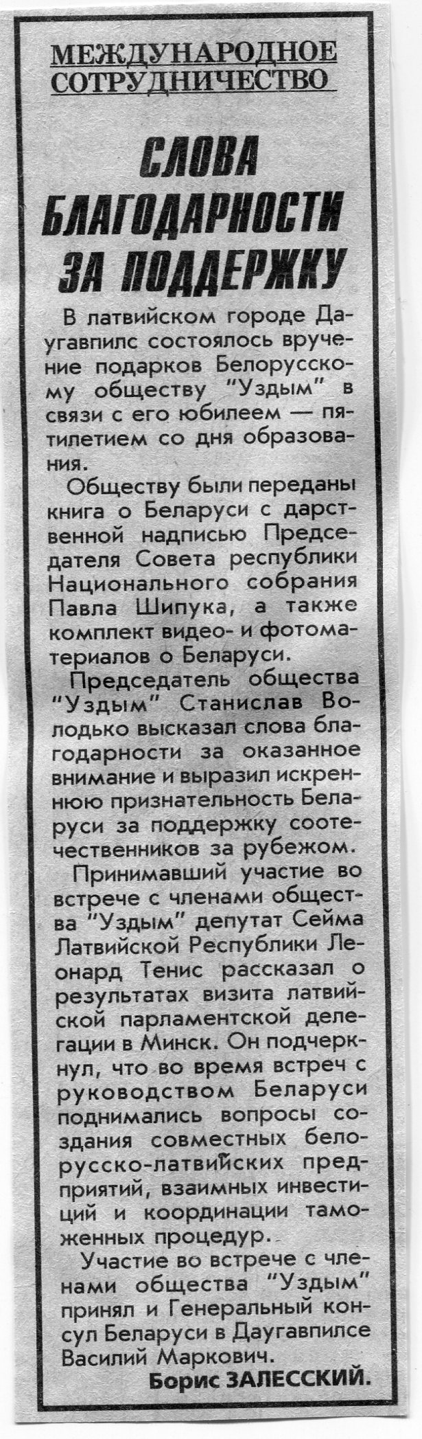 Залесский, Б. Слова благодарности за поддержку / Б. Залесский // Вечерний Минск. - 1998. - 16 окт.