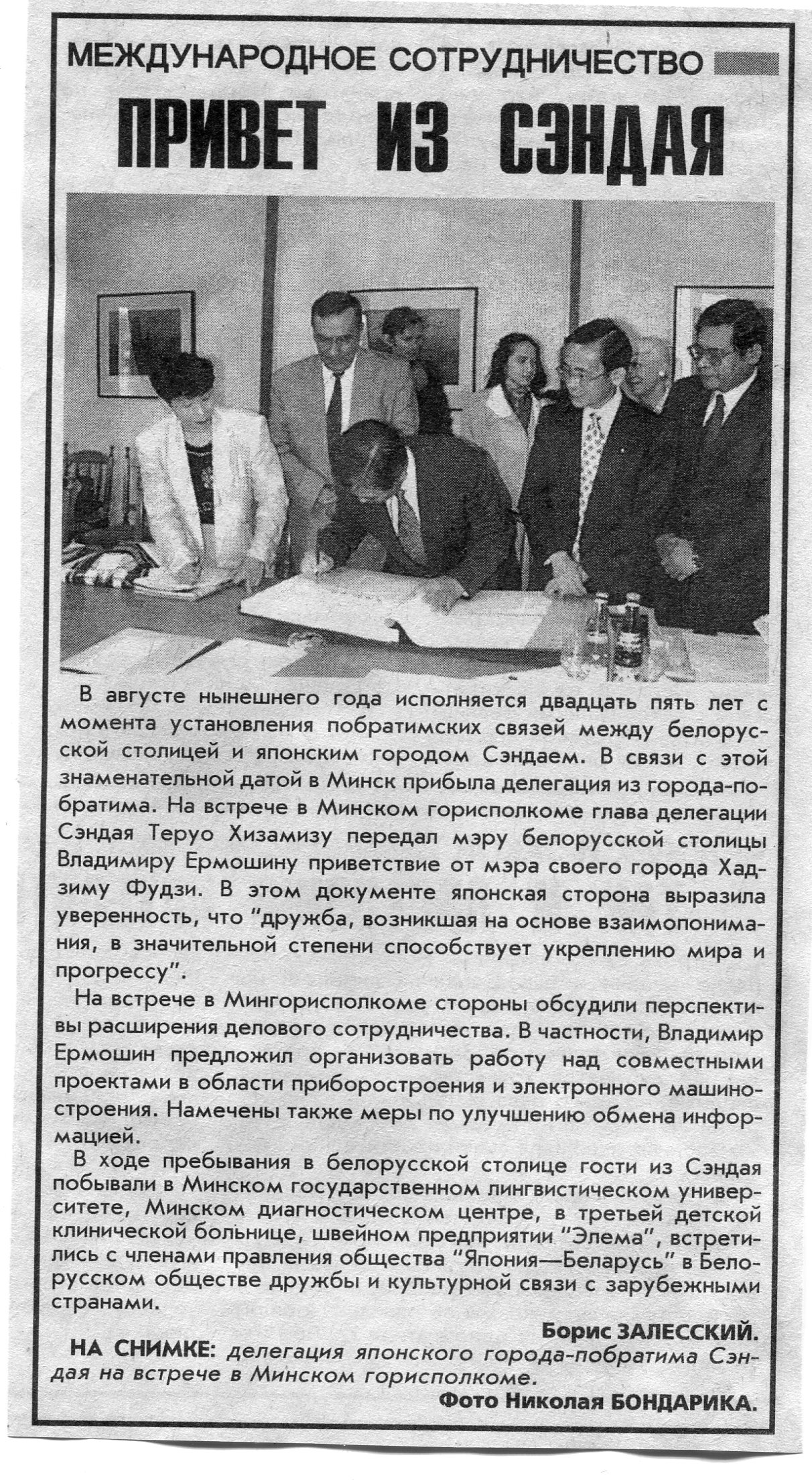 Залесский, Б. Привет из Сэндая / Б. Залесский // Вечерний Минск. - 1998. - 13 авг.