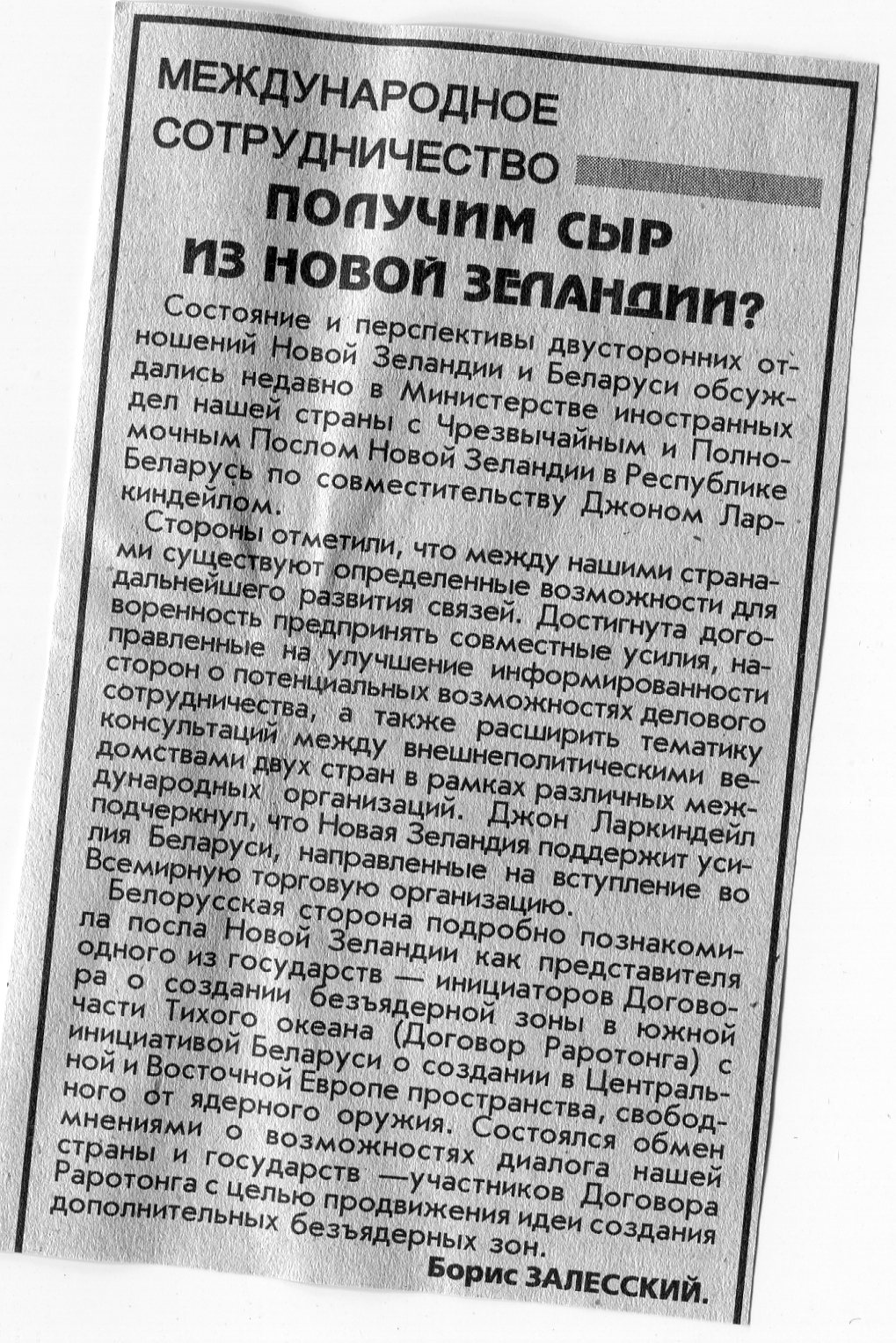 Залесский, Б. Получим сыр из Новой Зеландии? / Б. Залесский // Вечерний Минск. - 1998. - 20 июл.