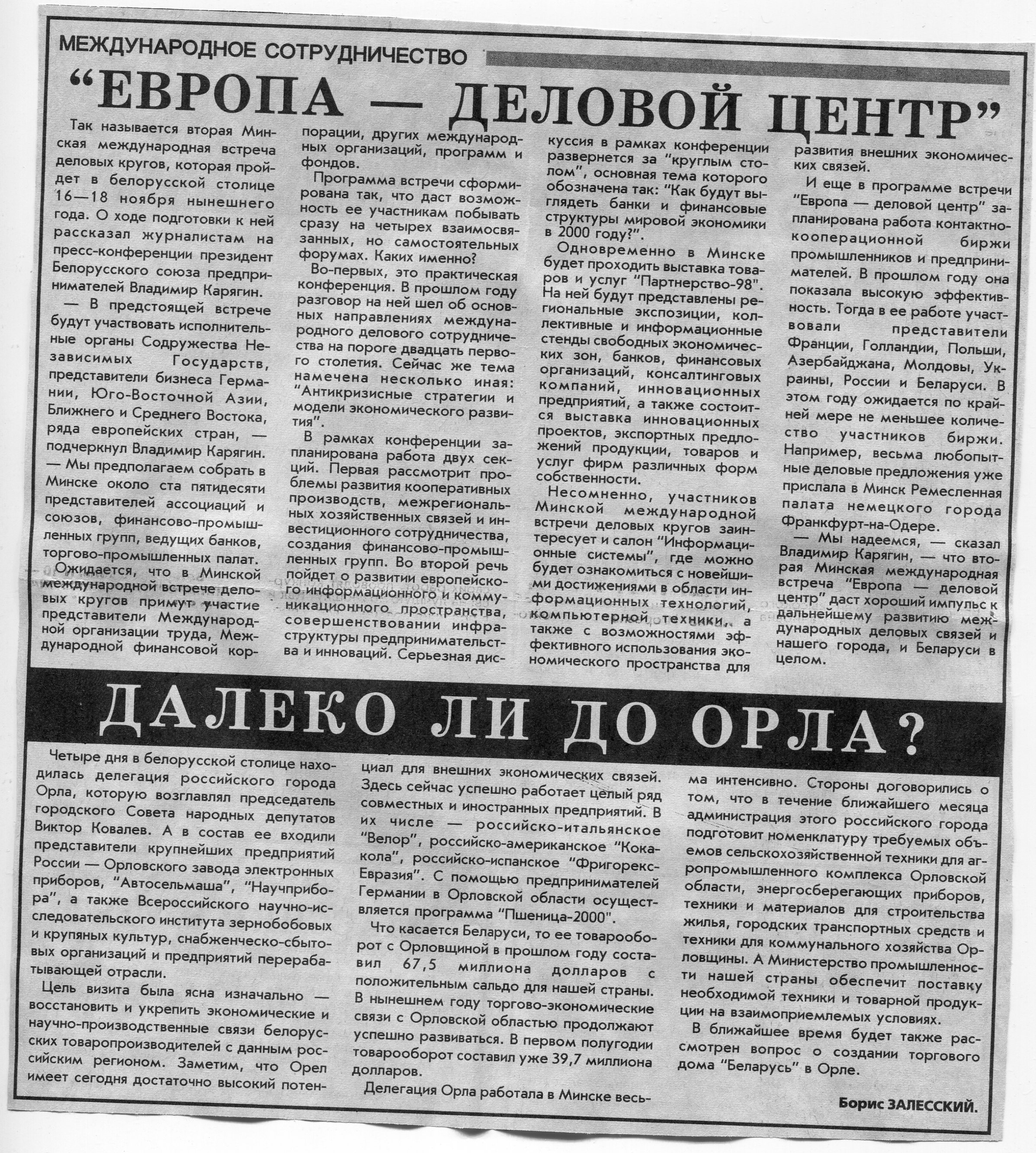 Залесский, Б. Международное сотрудничество / Б. Залесский // Вечерний Минск. - 1998. - 23 сент.