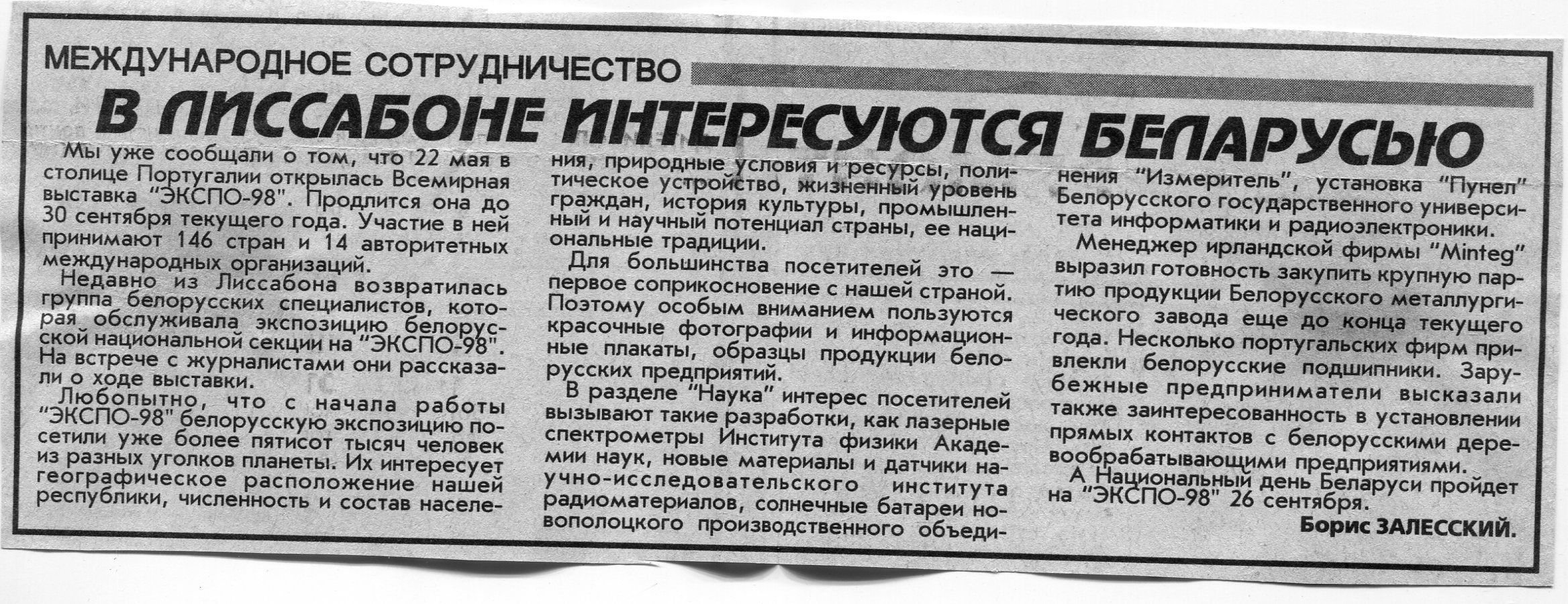 Залесский, Б. В Лиссабоне интересуются Беларусью / Б. Залесский // Вечерний Минск. - 1998. - 4 авг.