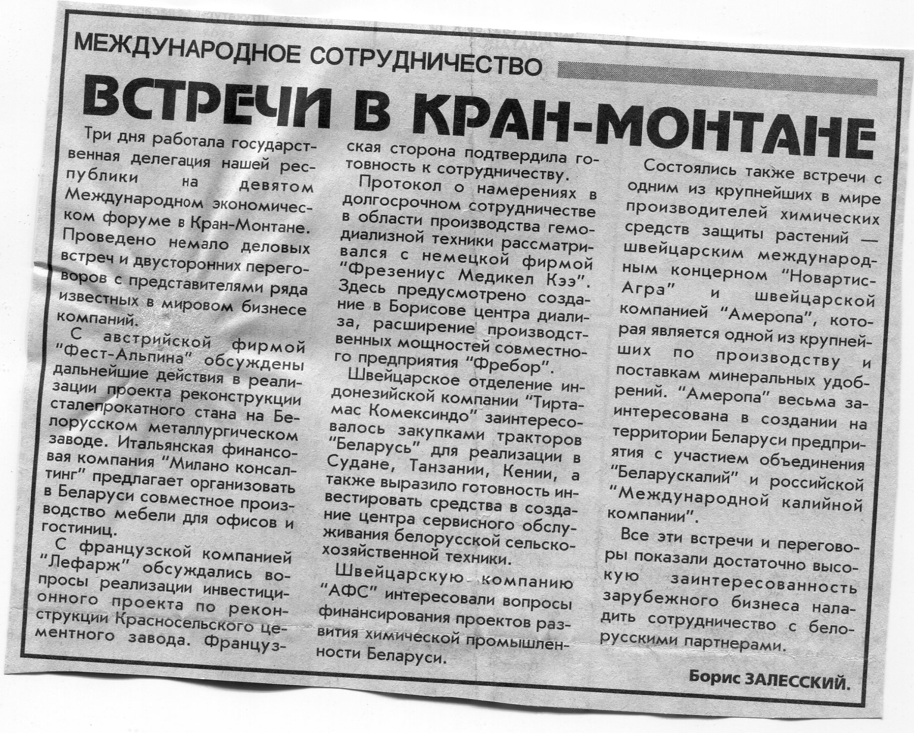 Залесский, Б. Встречи в Кран-Монтане / Б. Залесский // Вечерний Минск. - 1998. - 14 июл.