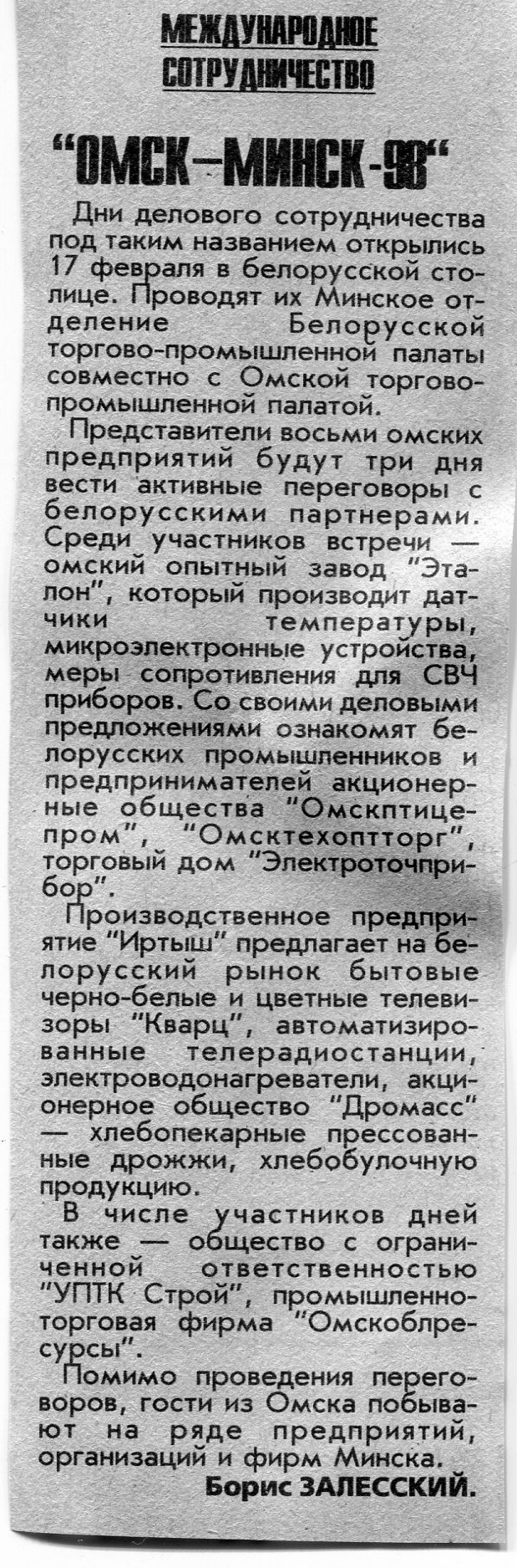 Залесский, Б. "Омск - Минск - 98" / Б. Залесский // Вечерний Минск. - 1998. - 17 февр.
