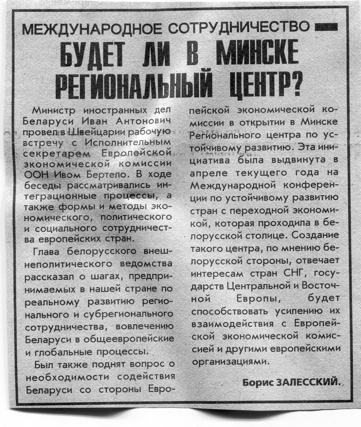 Залесский, Б. Будет ли в Минске региональный центр? / Б. Залесский // Вечерний Минск. - 1997. - 4 дек.