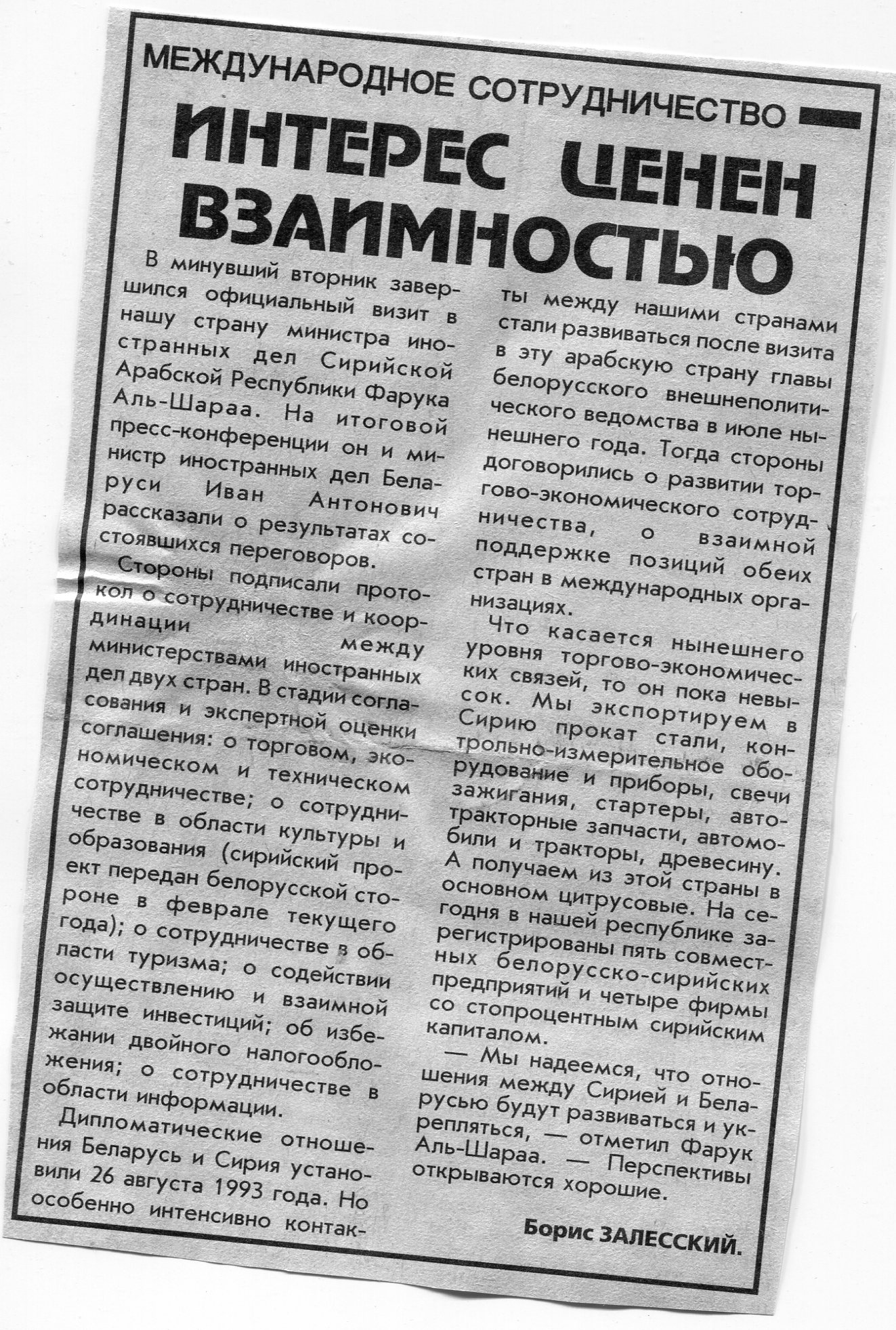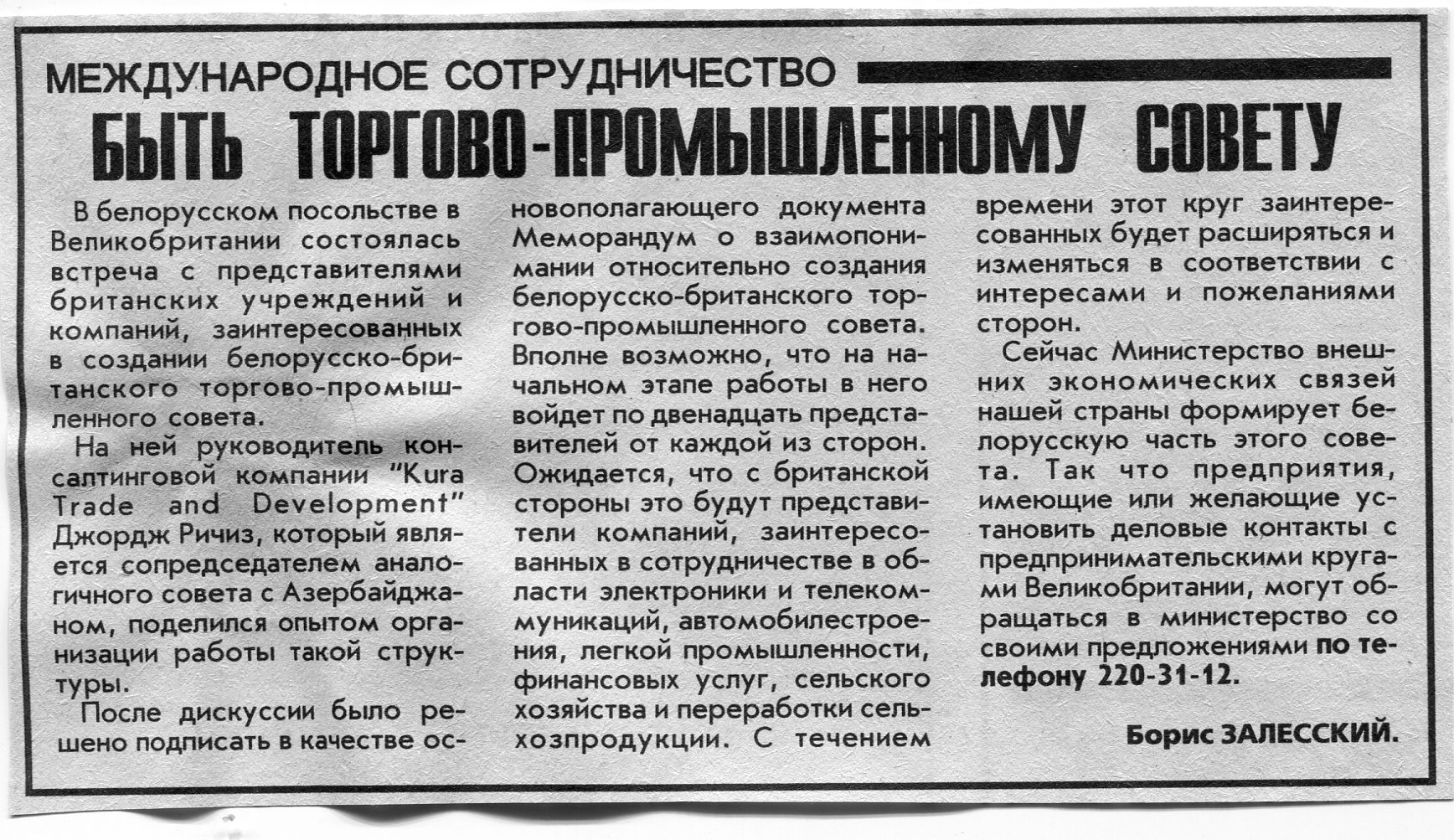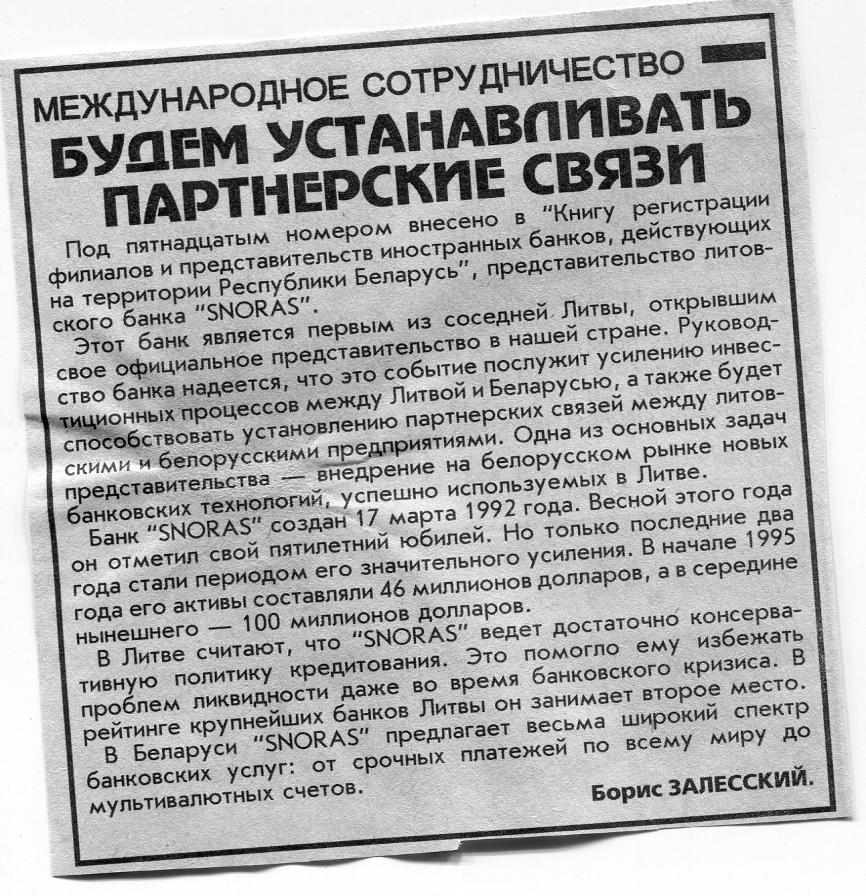 Залесский, Б. Будем устанавливать партнерские связи / Б. Залесский // Вечерний Минск. - 1997. - 17 окт.