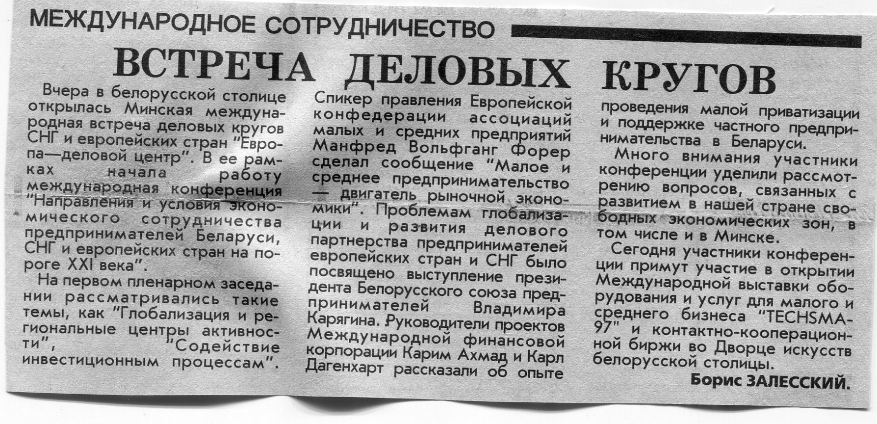 Залесский, Б. Встреча деловых кругов / Б. Залесский // Вечерний Минск. - 1997. - 18 нояб.