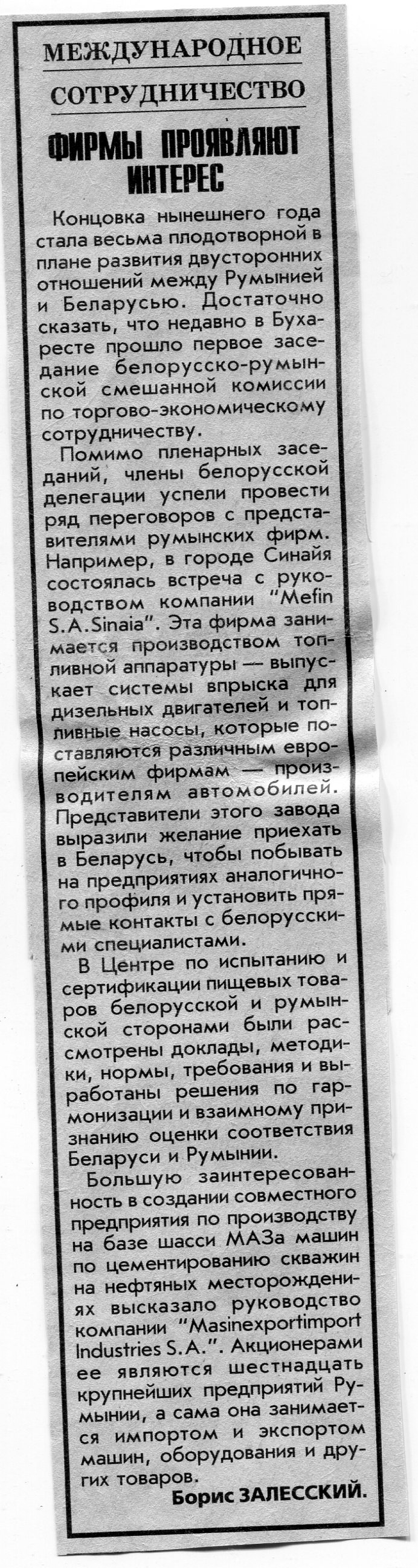 Залесский, Б. Фирмы проявляют интерес / Б. Залесский // Вечерний Минск. - 1997. - 15 дек.