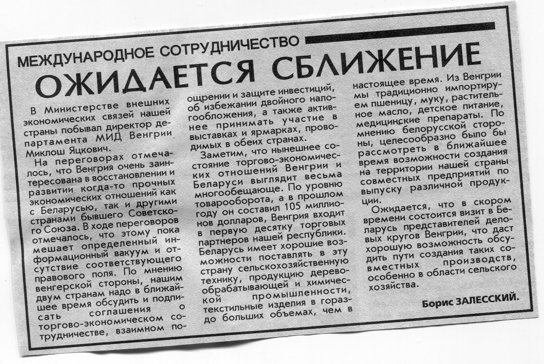 Залесский, Б. Ожидается сближение / Б. Залесский // Вечерний Минск. - 1997. - 24 нояб.
