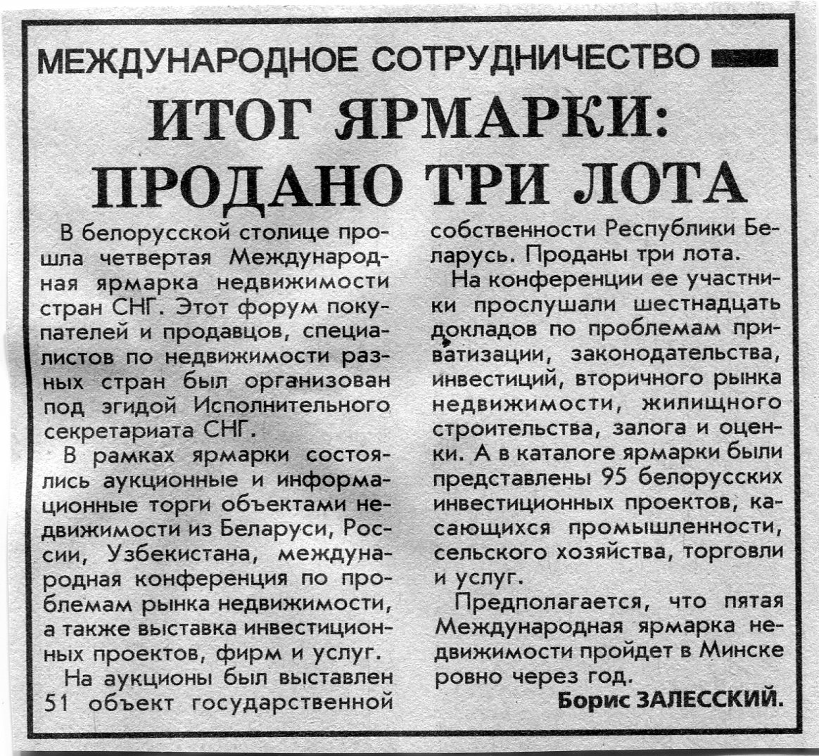 Залесский, Б. Итог ярмарки: продано три лота / Б. Залесский // Вечерний Минск. - 1996. - 30 окт.