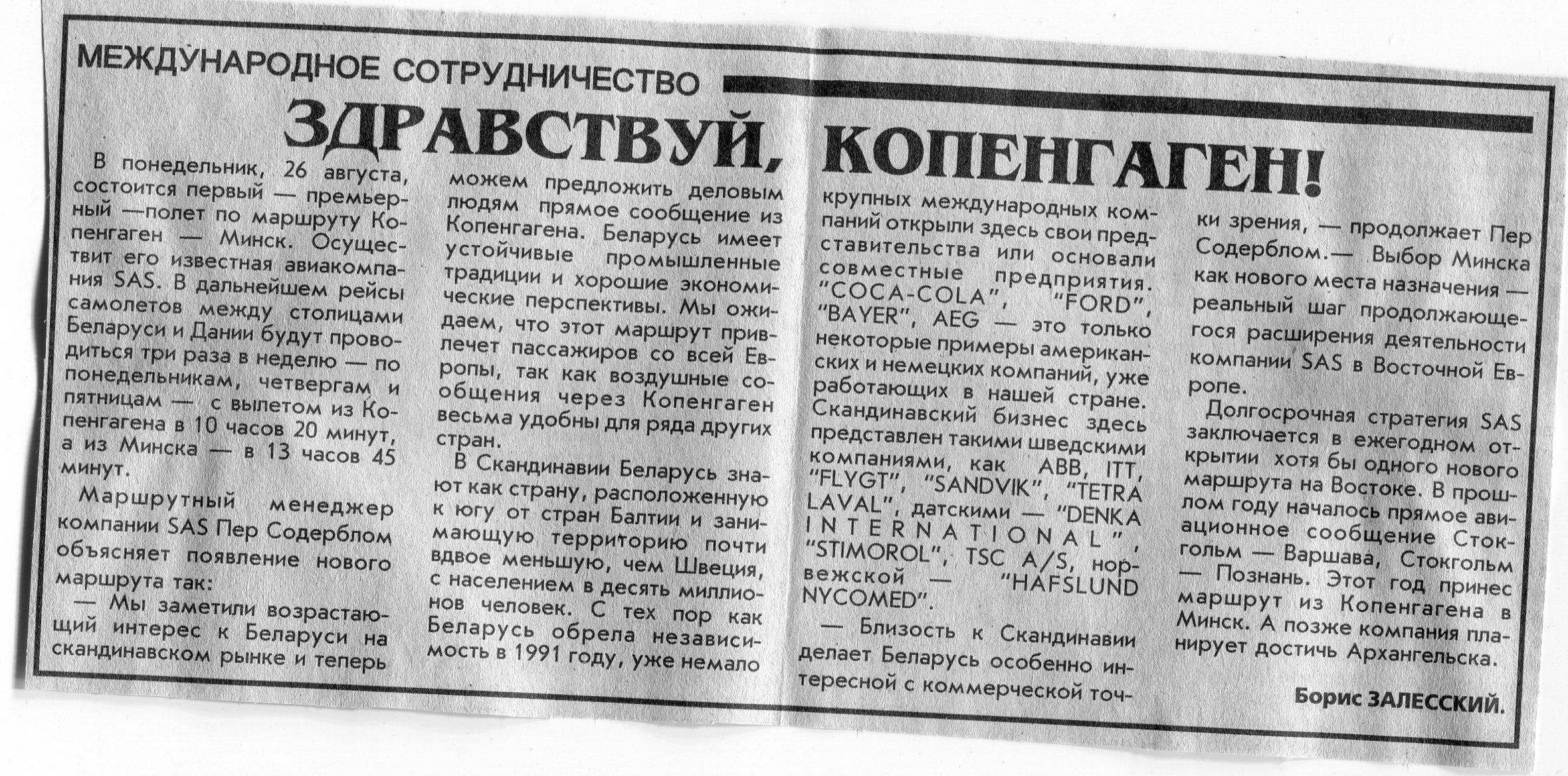Залесский, Б. Здравствуй, Копенгаген! / Б. Залесский // Вечерний Минск. - 1996. - 23 авг.