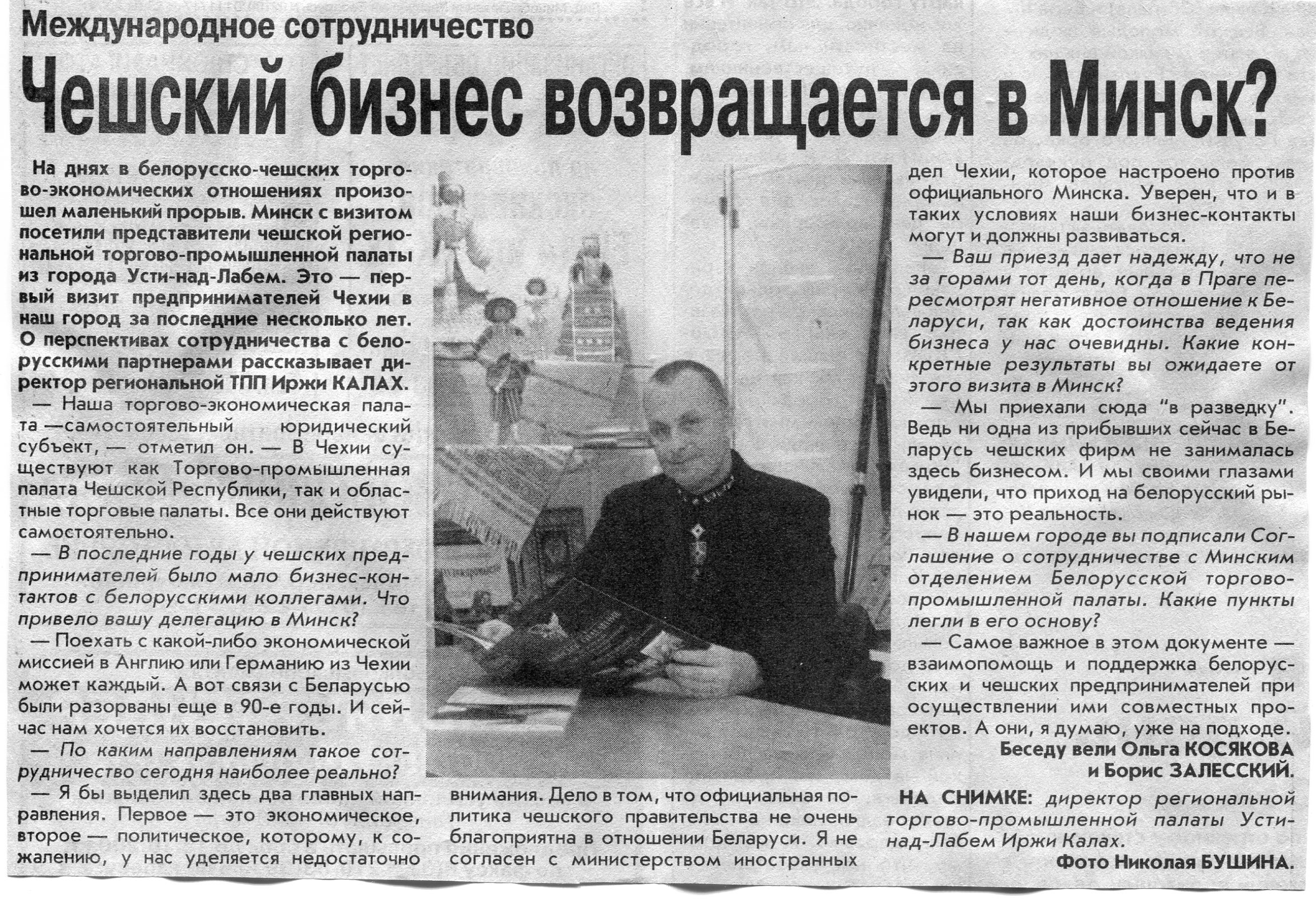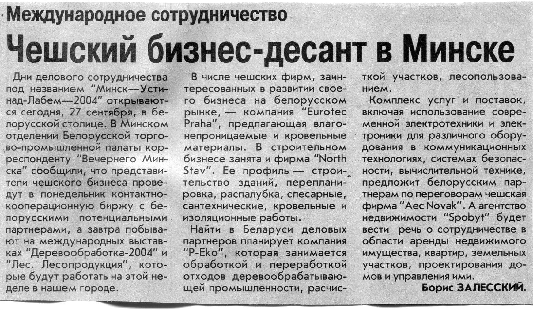 Залесский, Б. Чешский бизнес-десант в Минске / Б. Залесский // Вечерний Минск. - 2004. - 27 сент.