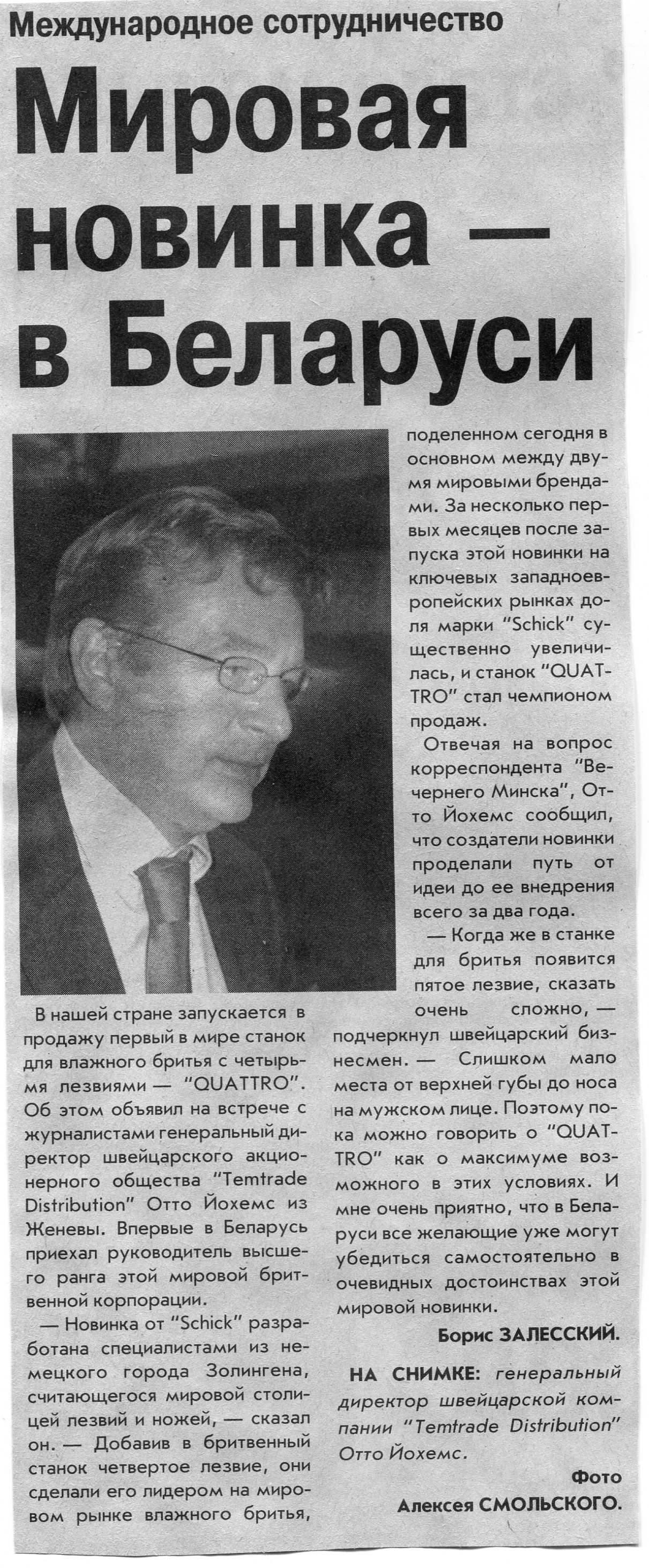 Залесский, Б. Мировая новинка - в Беларуси / Б. Залесский // Вечерний Минск. - 2004. - 10 нояб.