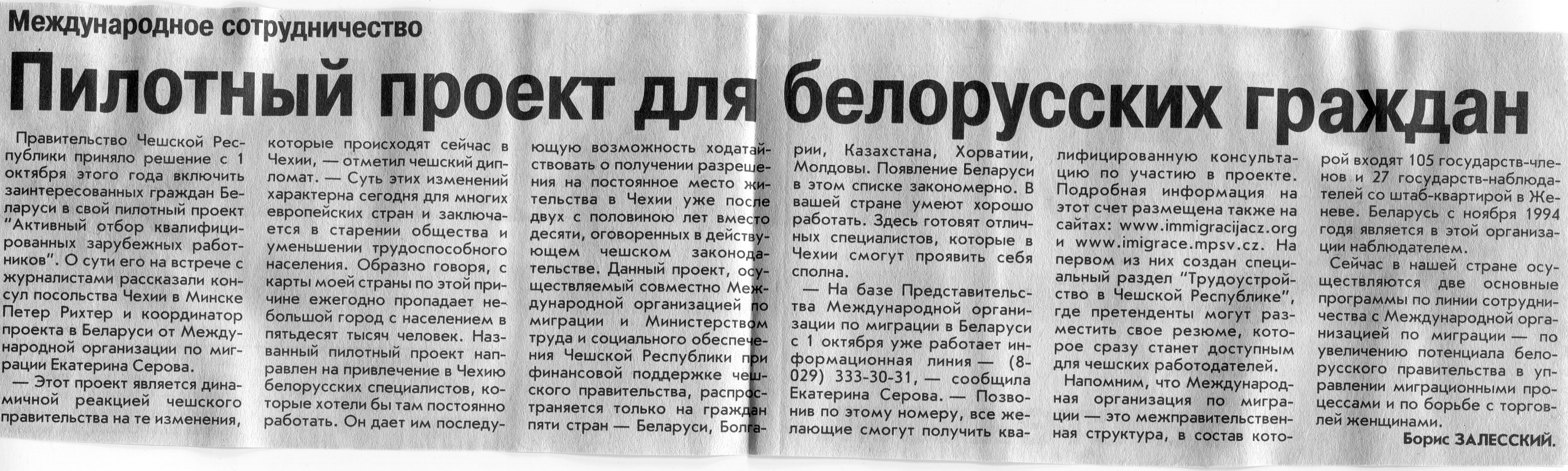 Залесский, Б. Пилотный проект для белорусских граждан / Б. Залесский // Вечерний Минск. - 2004. - 21 окт.