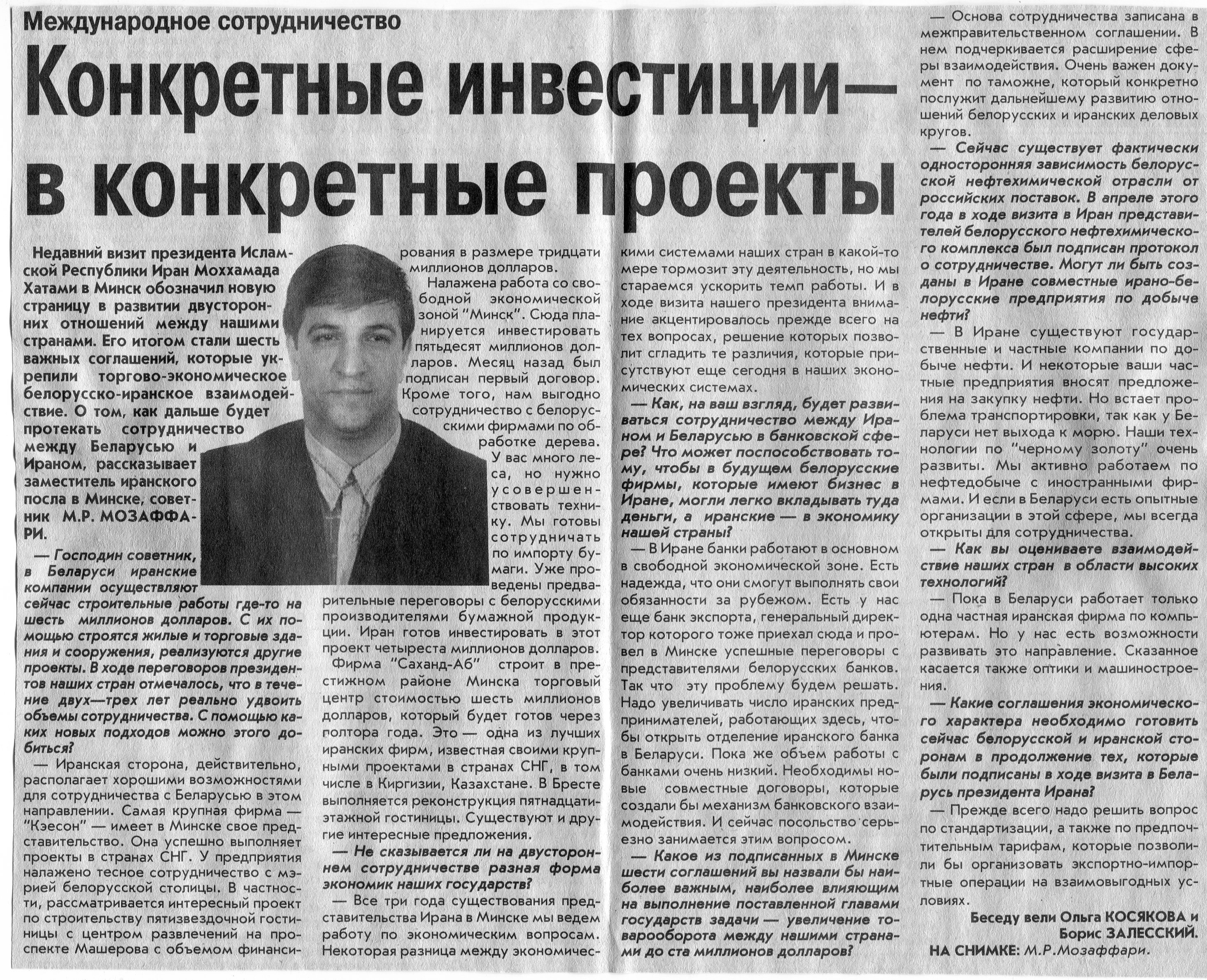 Залесский, Б. Дипломатия помогает экономике / Б. Залесский // Вечерний Минск. – 2004. – 4 авг.
