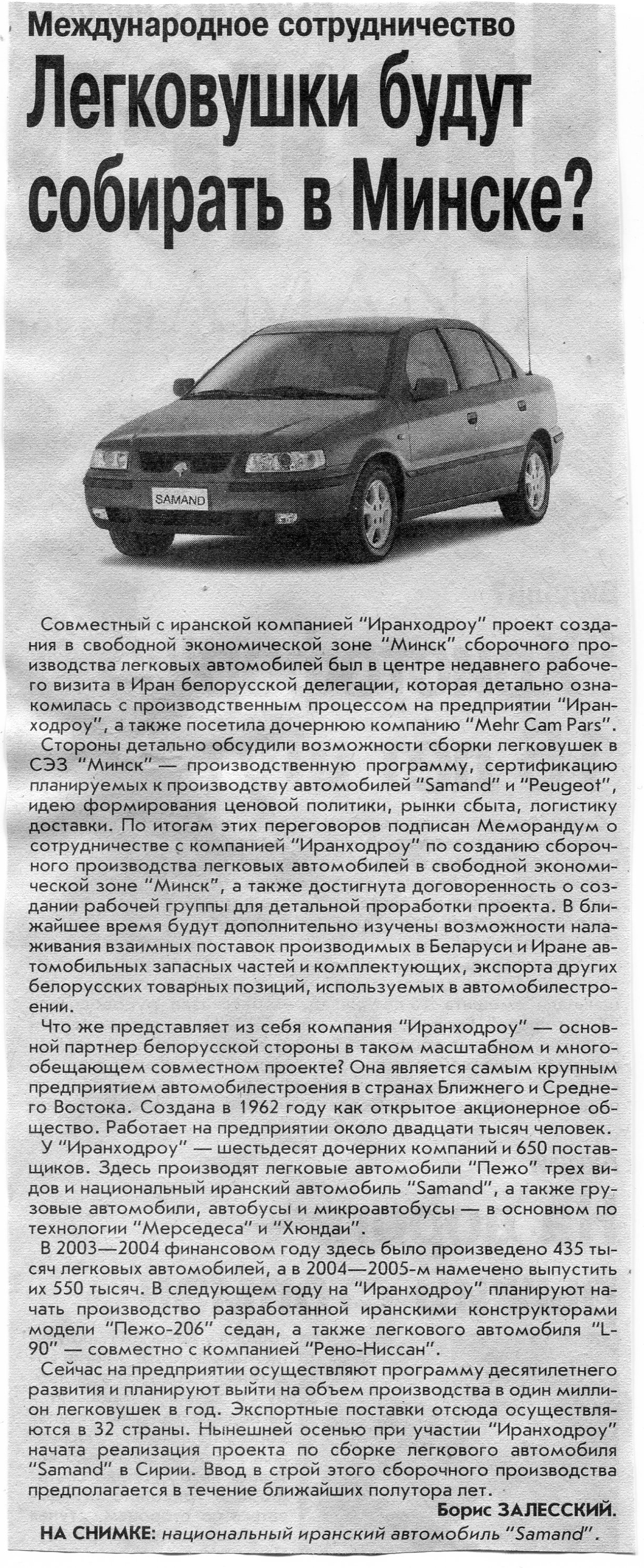 Залесский, Б. Легковушки будут собирать в Минске? / Б. Залесский // Вечерний Минск. - 2004. - 4 нояб.
