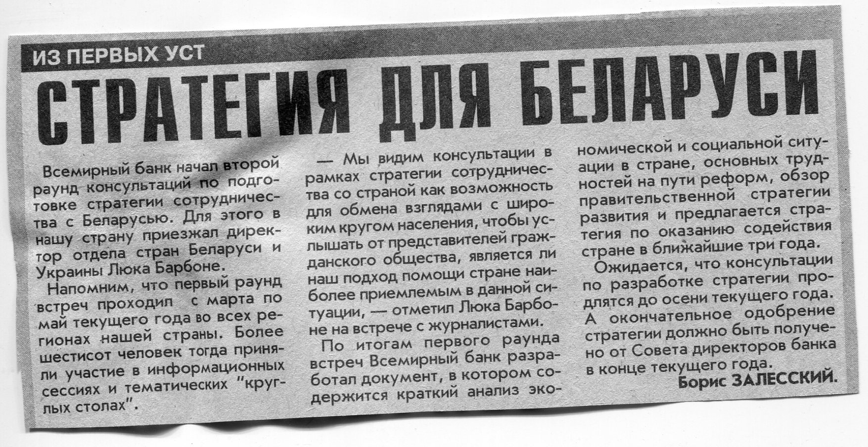 Залесский, Б. Стратегия для Беларуси / Б. Залесский // Вечерний Минск. - 2001. - 9 июл.