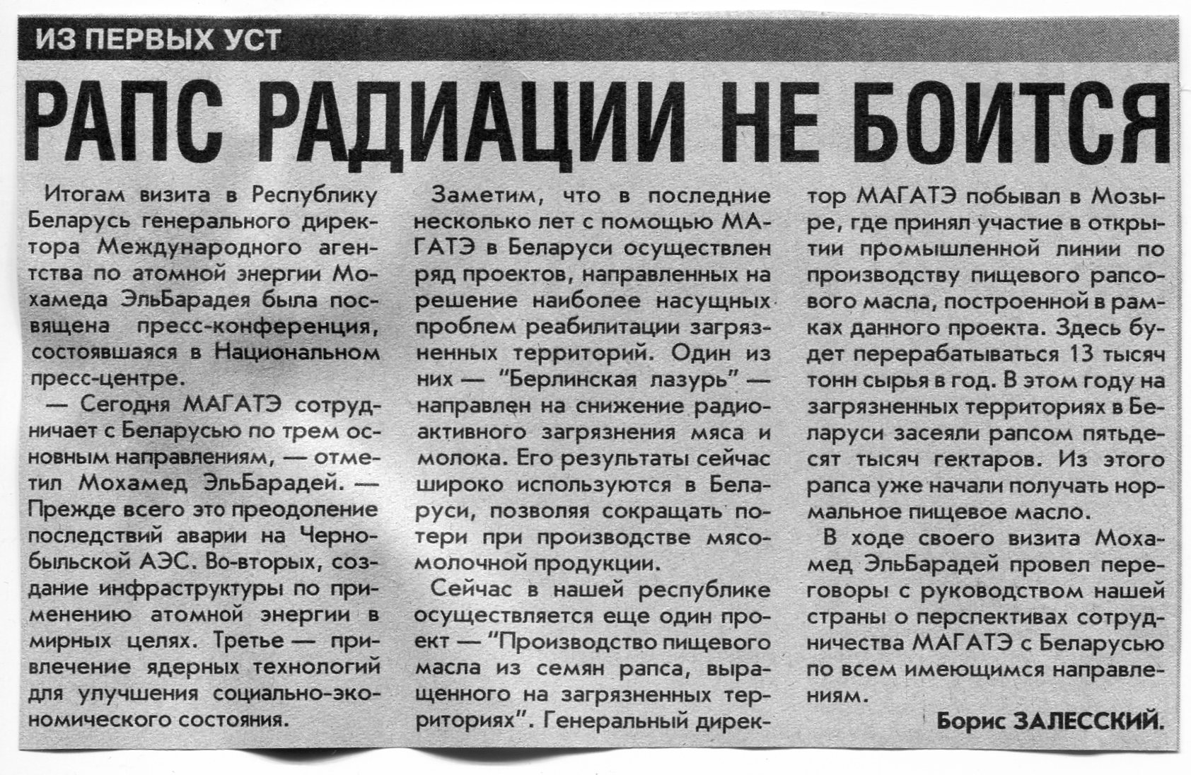 Залесский, Б. Рапс радиации не боится / Б. Залесский // Вечерний Минск. - 2001. - 3 сент.