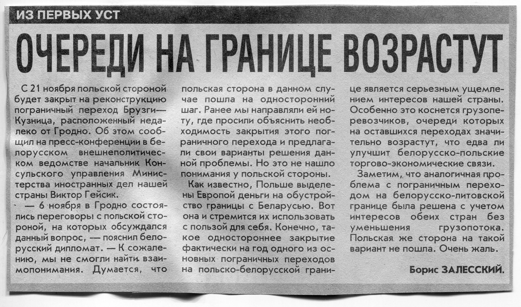 Залесский, Б. Очереди на границе возрастут / Б. Залесский // Вечерний Минск. - 2001. - 13 нояб.