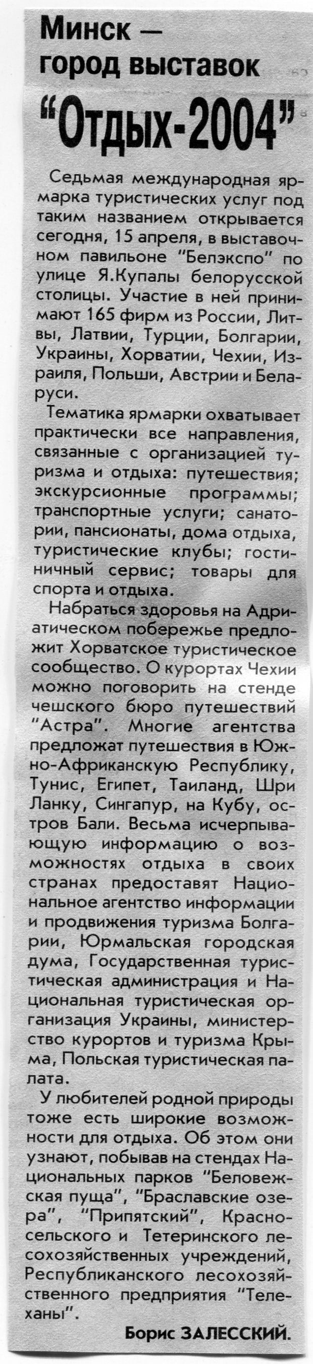 Залесский, Б. "Отдых-2004" / Б. Залесский // Вечерний Минск. – 2004. - 15 апр.