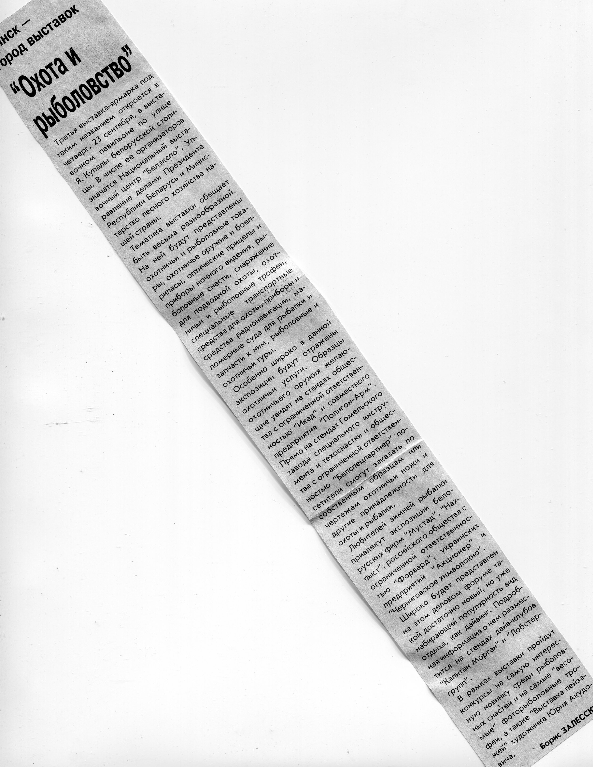 Залесский, Б. "Охота и рыболовство" / Б. Залесский // Вечерний Минск. – 2004. - 20 сент.