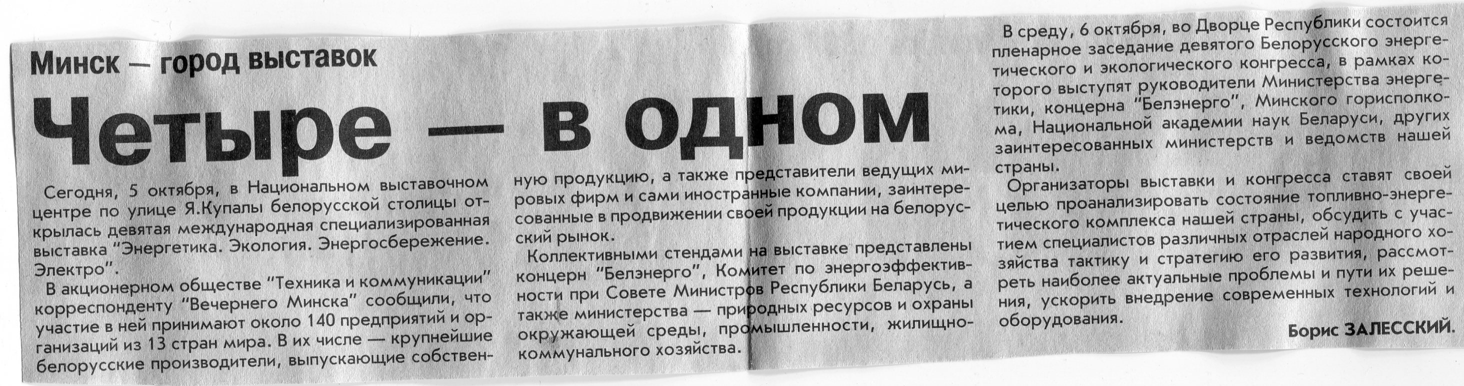 Залесский, Б. Четыре - в одном / Б. Залесский // Вечерний Минск. – 2004. - 5 окт.