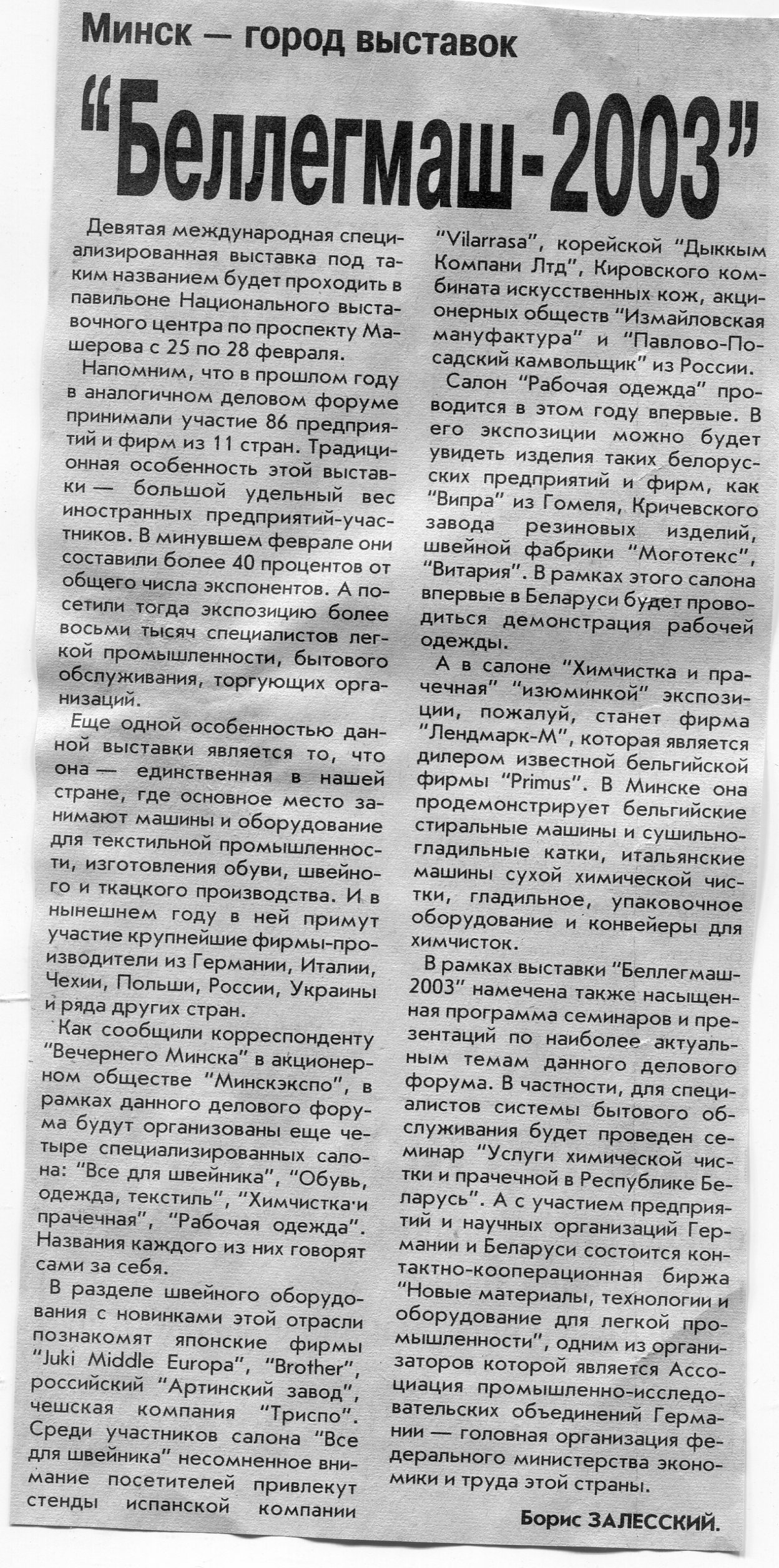 Залесский, Б. "Беллегмаш-2003" / Б. Залесский // Вечерний Минск. – 2003. – 11 февр.