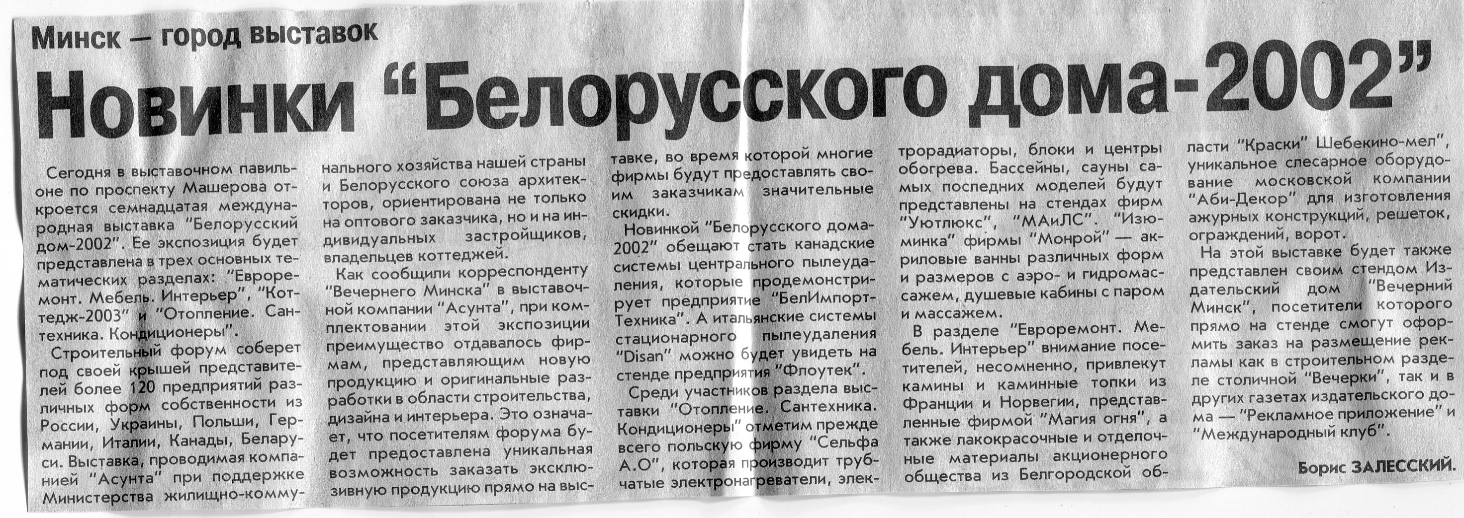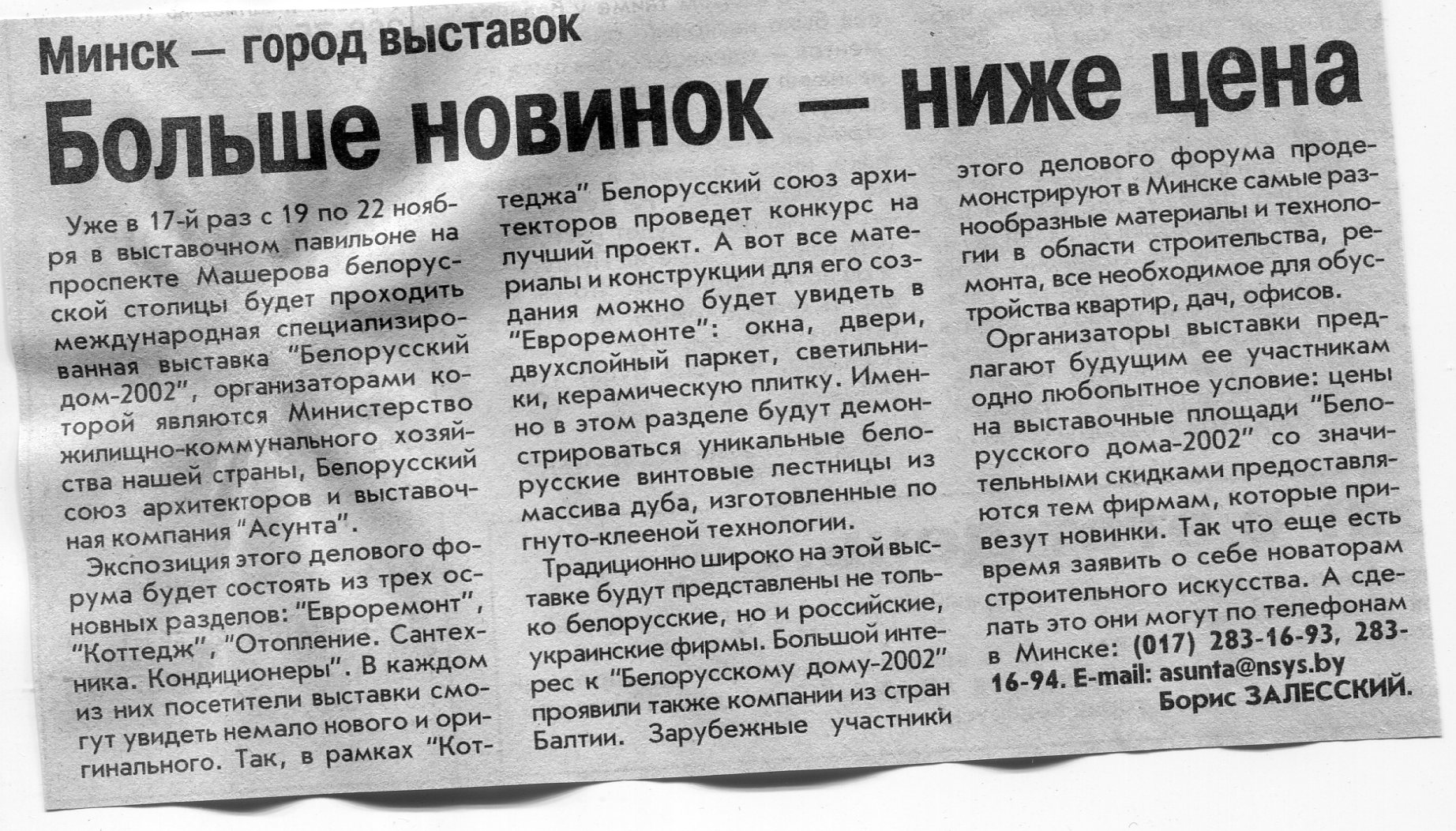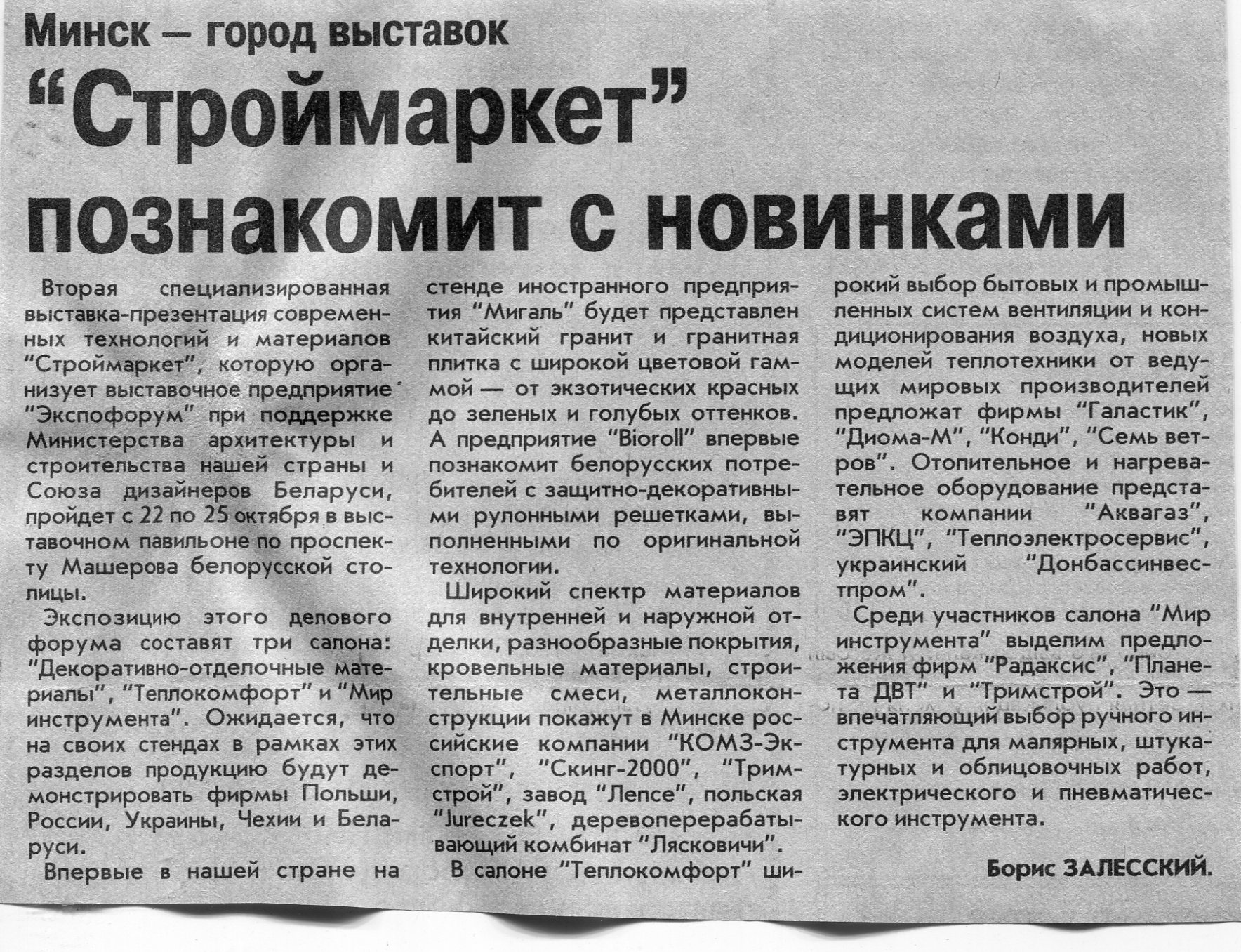 Залесский, Б. "Строймаркет" познакомит с новинками / Б. Залесский // Вечерний Минск. - 2002. - 16 окт.