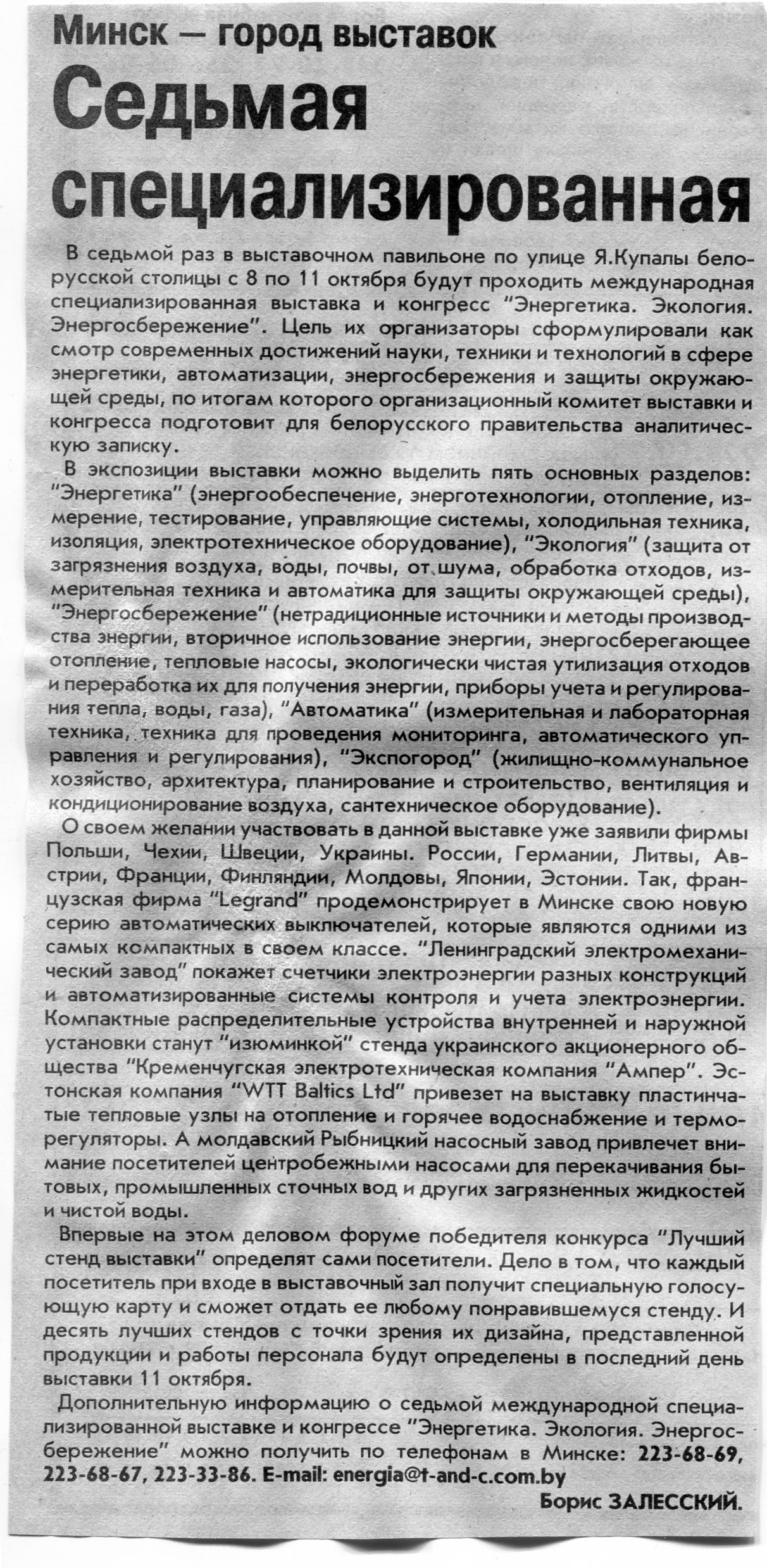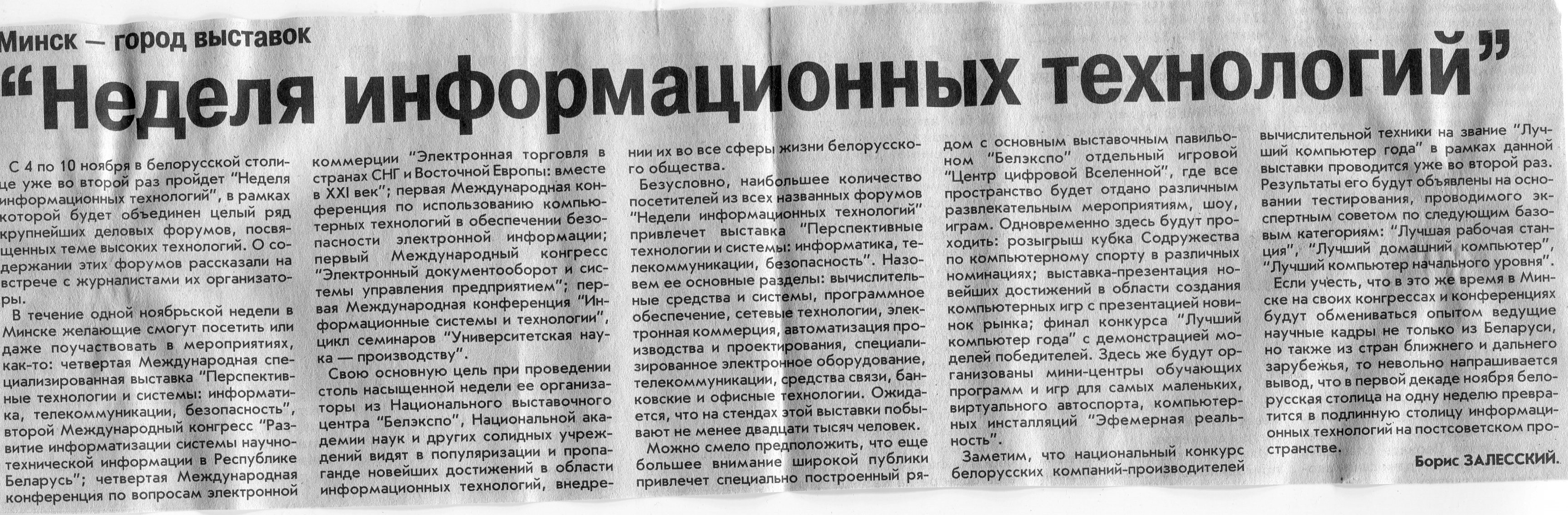 Залесский, Б. "Неделя информационных технологий" / Б. Залесский // Вечерний Минск. - 2002. - 12 сент.