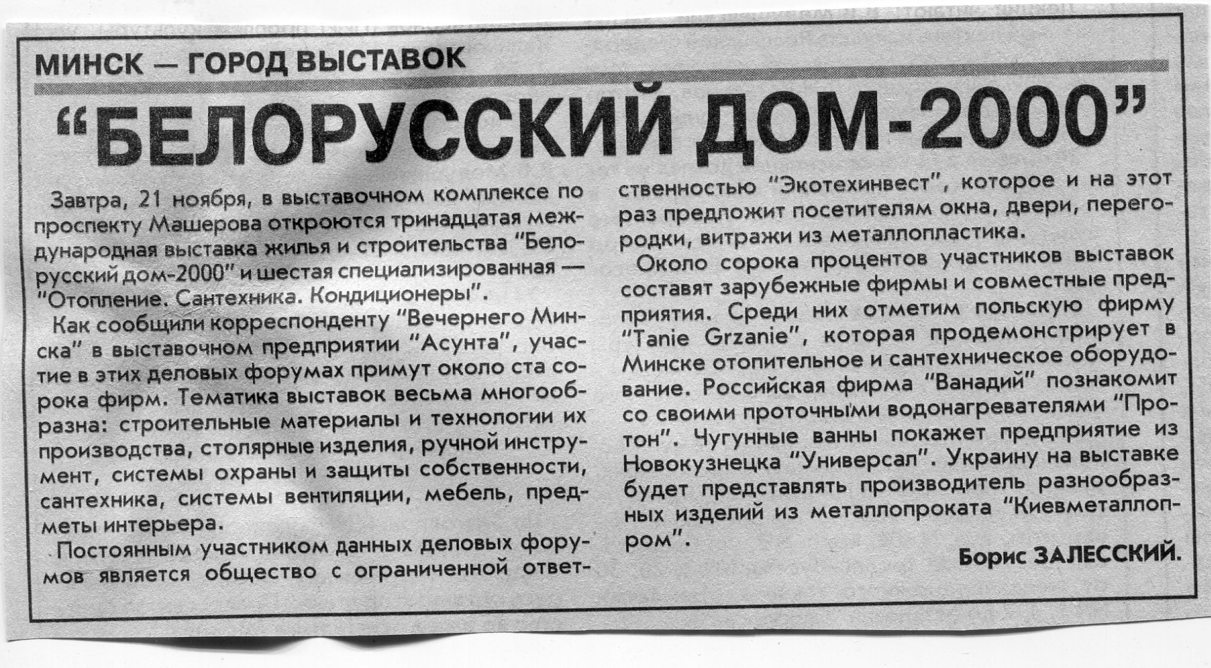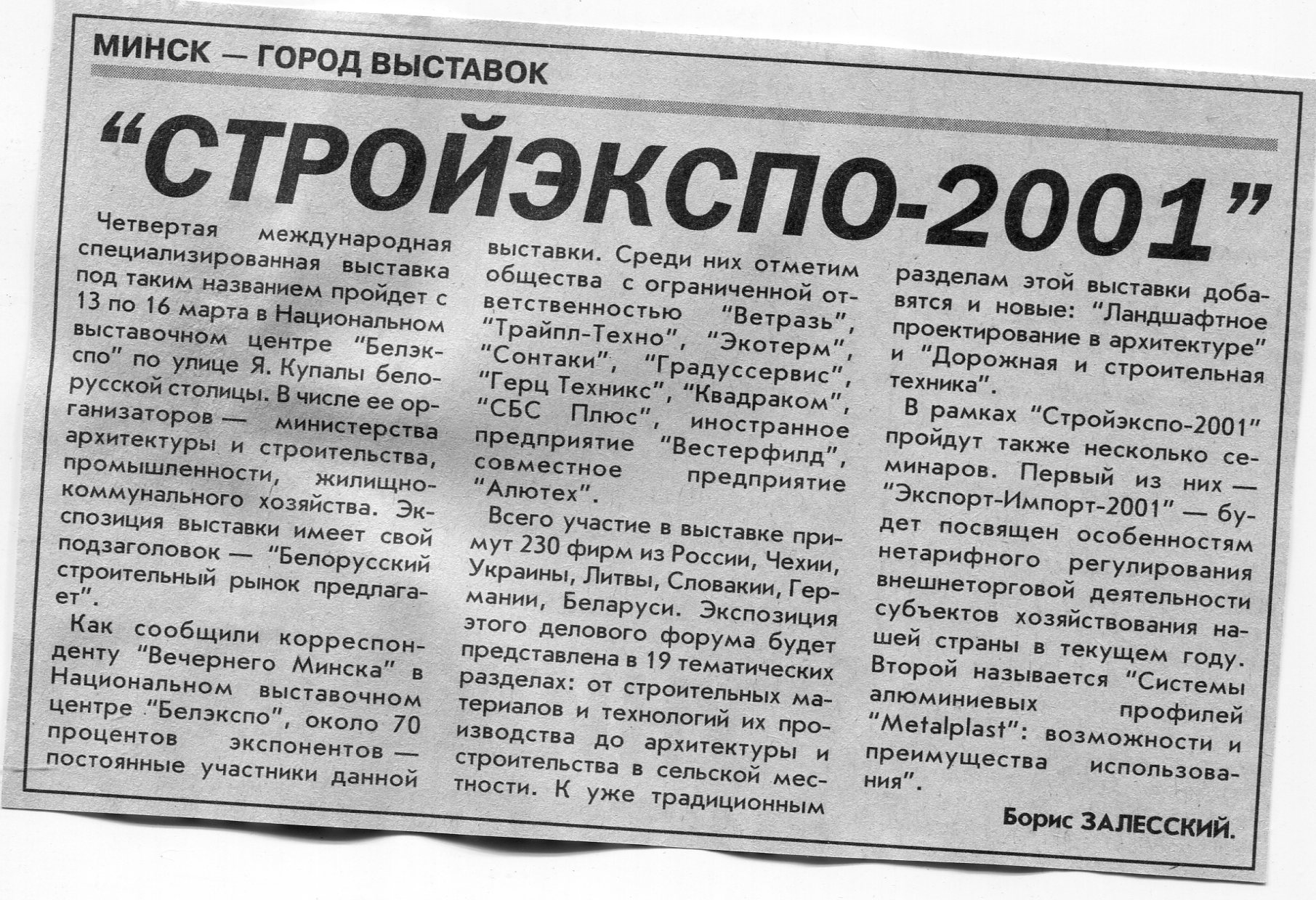 Залесский, Б. "Стройэкспо-2001" / Б. Залесский // Вечерний Минск. - 2001. - 5 мар.