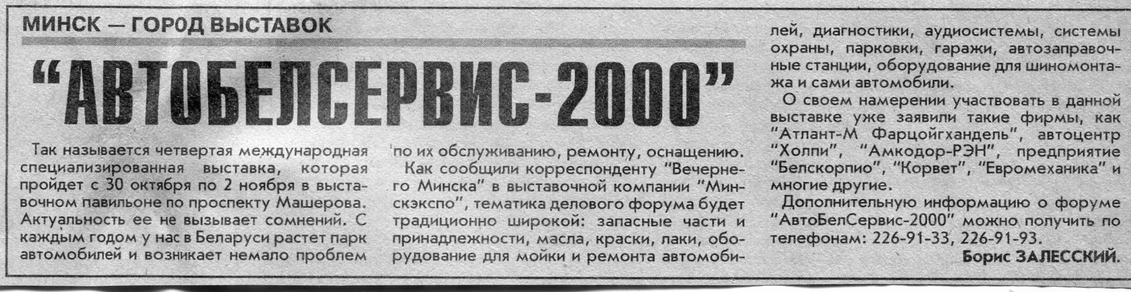 Залесский, Б. "Автобелсервис-2000" / Б. Залесский // Вечерний Минск. - 2000. - 10 окт.