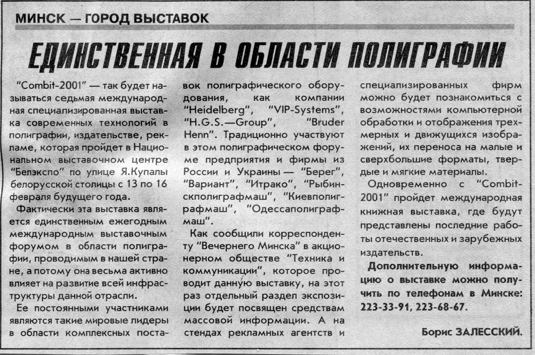 Залесский, Б. "Сombit-2001" / Б. Залесский // Вечерний Минск. - 2001. - 11 янв.