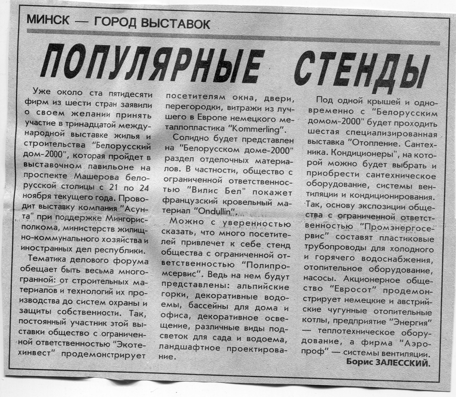 Залесский, Б. Популярные стенды / Б. Залесский // Вечерний Минск. - 2000. - 6 окт.