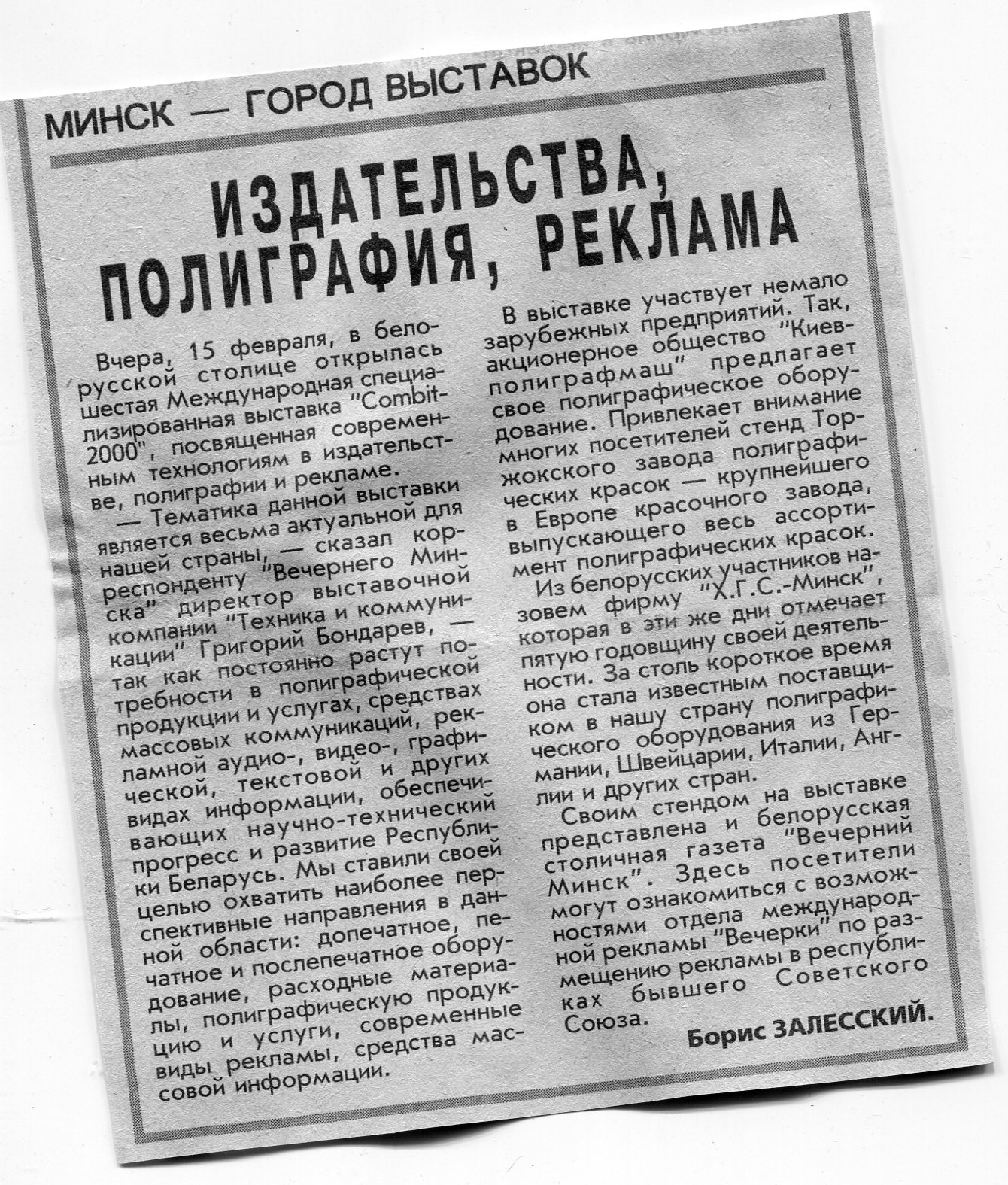 Залесский, Б. Издательства, полиграфия, реклама / Б. Залесский // Вечерний Минск. - 2000. - 16 февр.