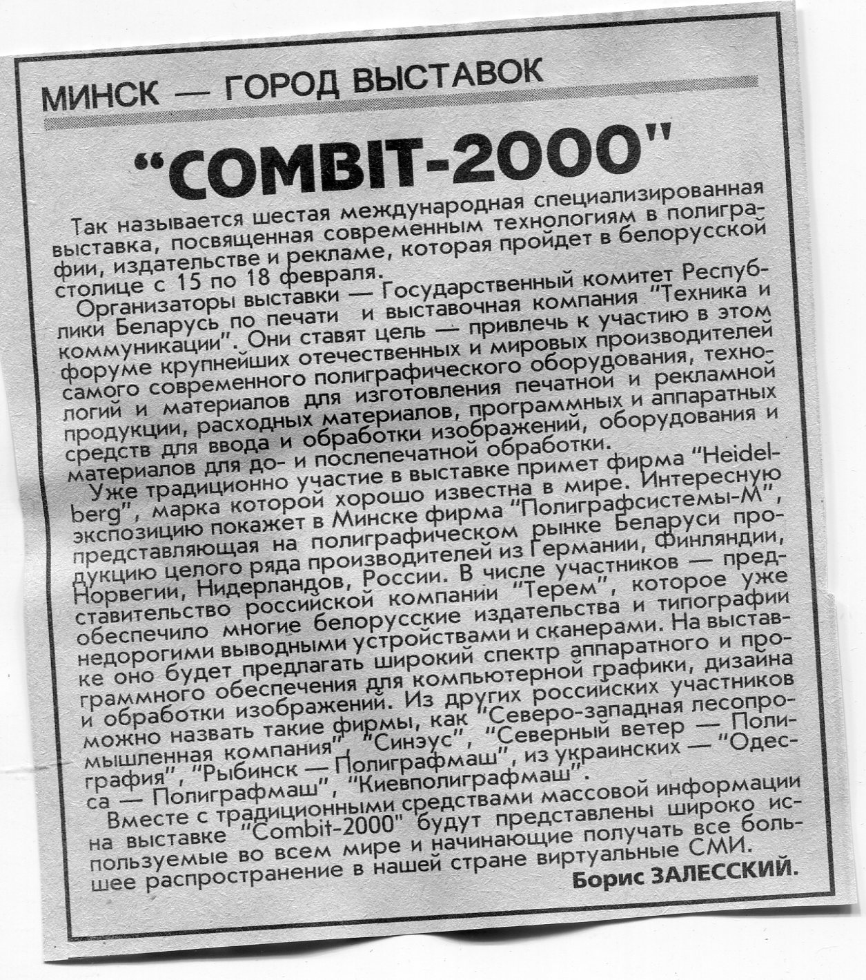 Залесский, Б. "Combit-2000" / Б. Залесский // Вечерний Минск. - 2000. - 21 янв.