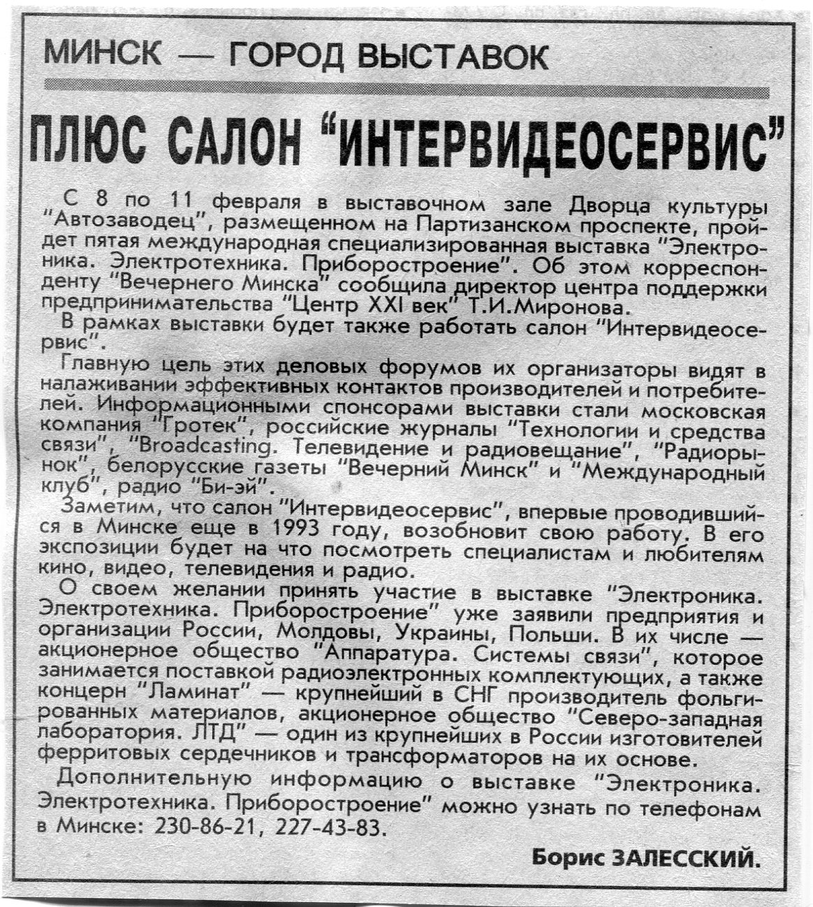 Залесский, Б. Плюс салон "Интервидеосервис" / Б. Залесский // Вечерний Минск. - 2000. - 19 янв.