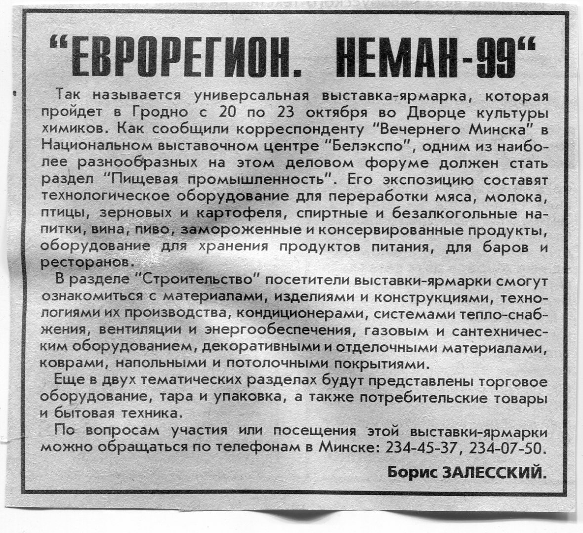 Залесский, Б. "Еврорегион. Неман-99" / Б. Залесский // Вечерний Минск. - 1999. - 1 сент.