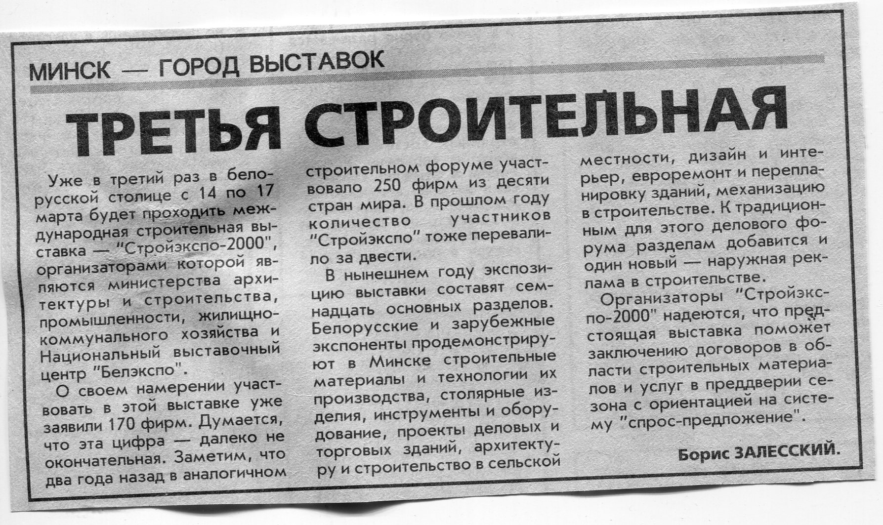 Залесский, Б. "Стройинвест-2000" / Б. Залесский // Вечерний Минск. - 2000. - 14 янв.
