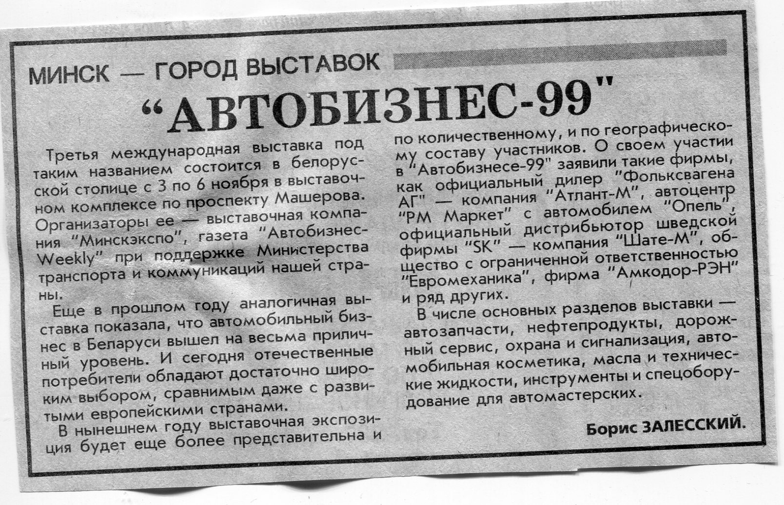 Залесский, Б. "Автобизнес-99" / Б. Залесский // Вечерний Минск. - 1999. - 29 окт.