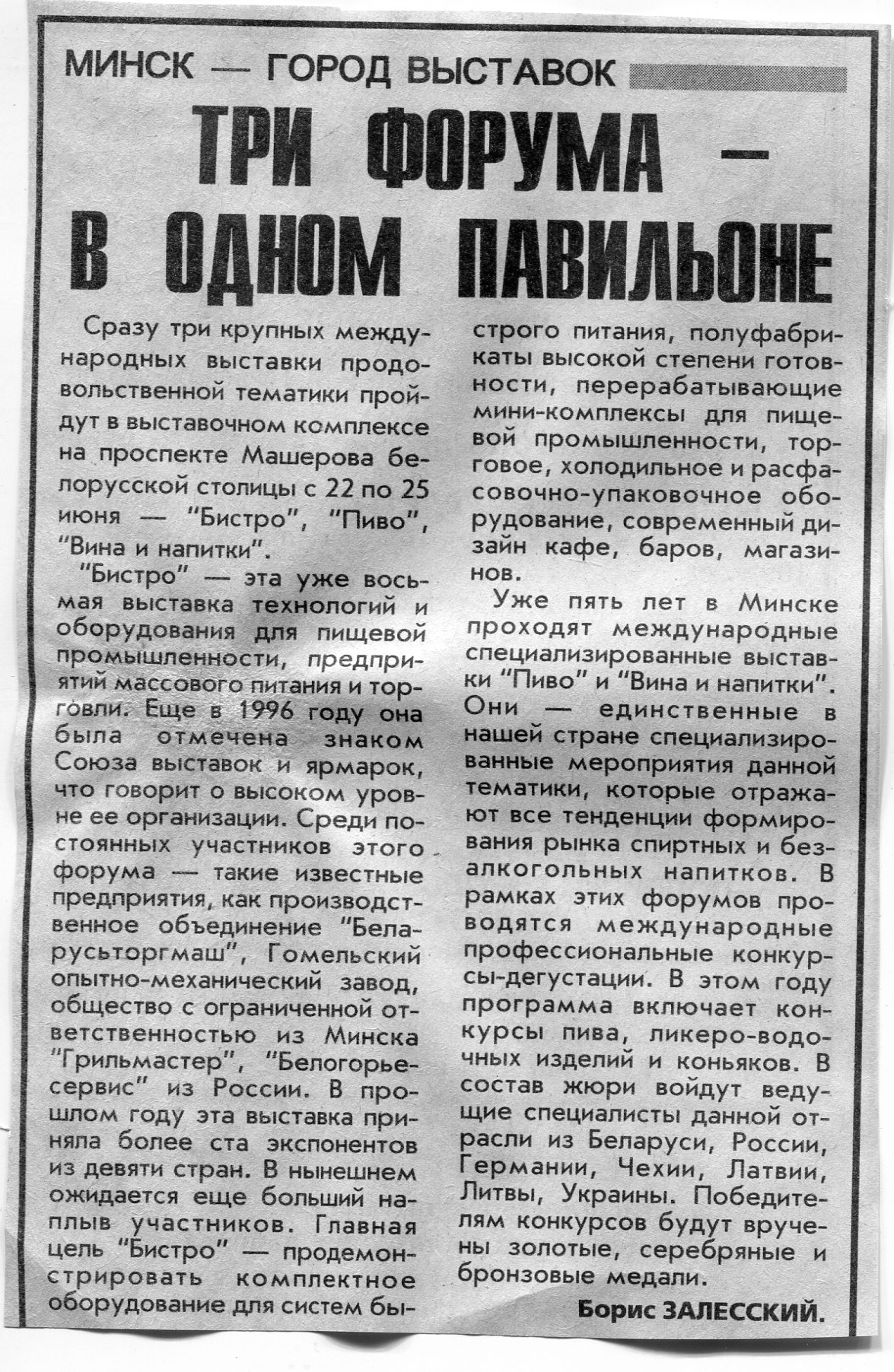 Залесский, Б. Три форума - в одном павильоне / Б. Залесский // Вечерний Минск. - 1999. - 16 июн.