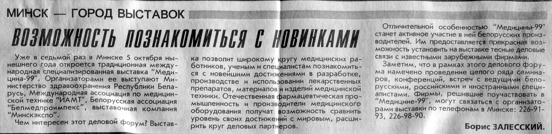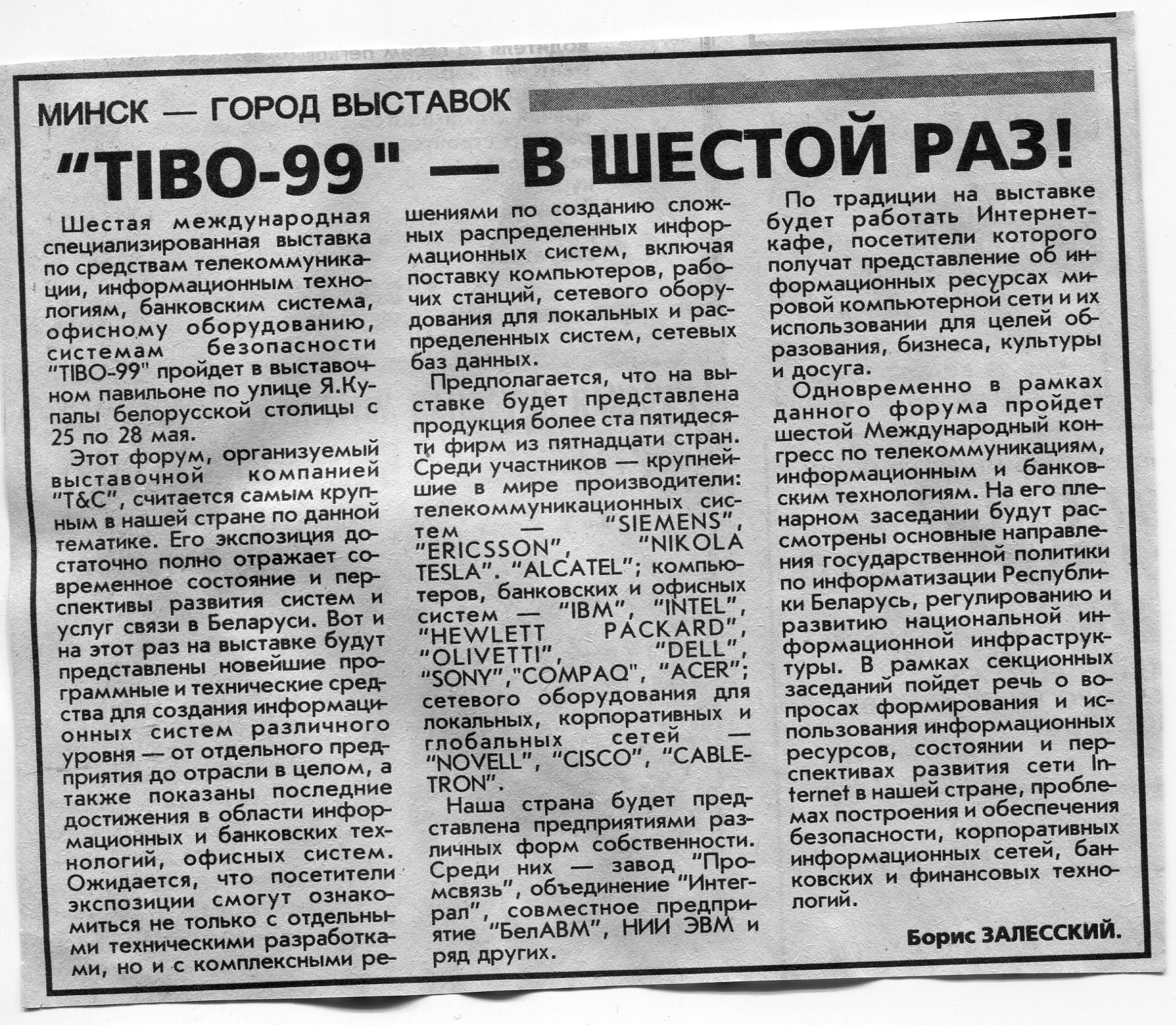 Залесский, Б. "TIBO-99" - в шестой раз! / Б. Залесский // Вечерний Минск. - 1999. - 20 мая.