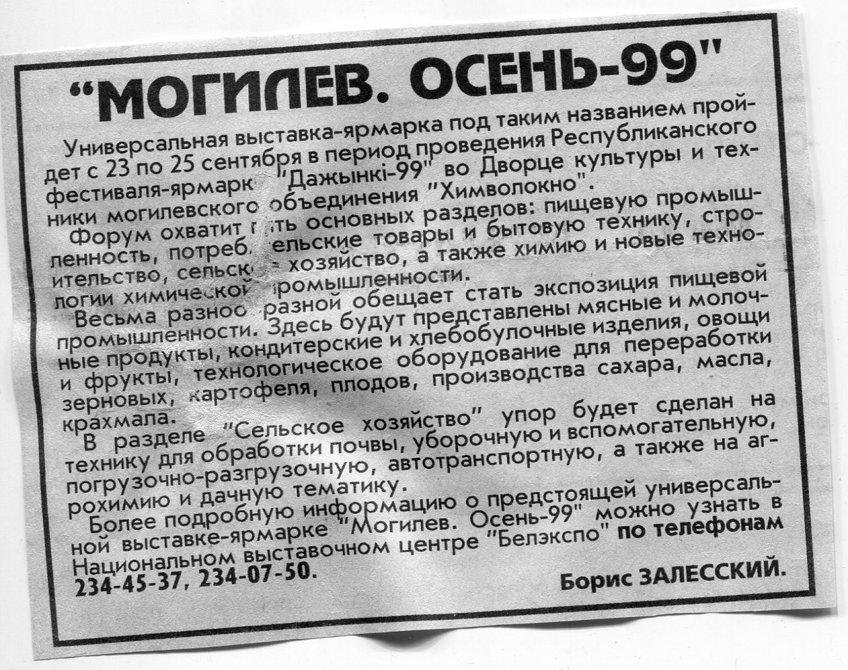 Залесский, Б. "Могилев. Осень-99" / Б. Залесский // Вечерний Минск. - 1999. - 13 авг.