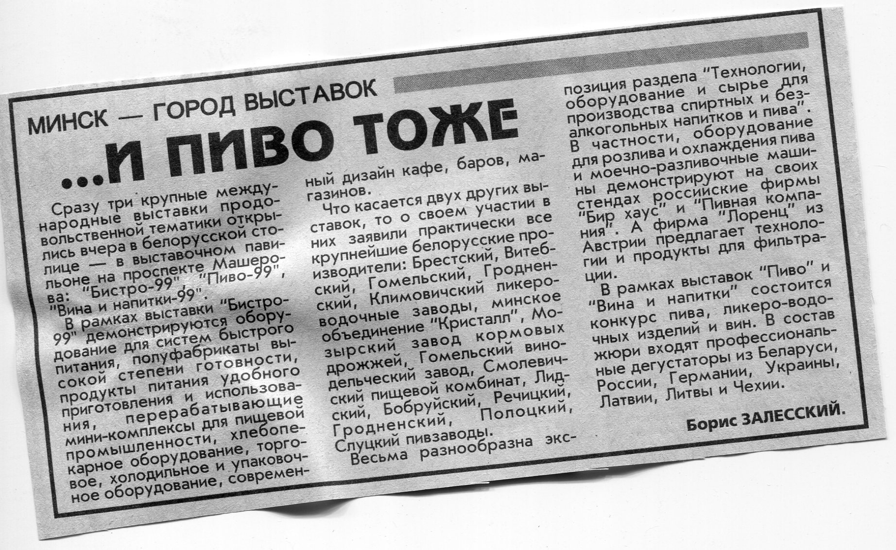 Залесский, Б. ... И пиво тоже / Б. Залесский // Вечерний Минск. - 1999. - 23 июн.