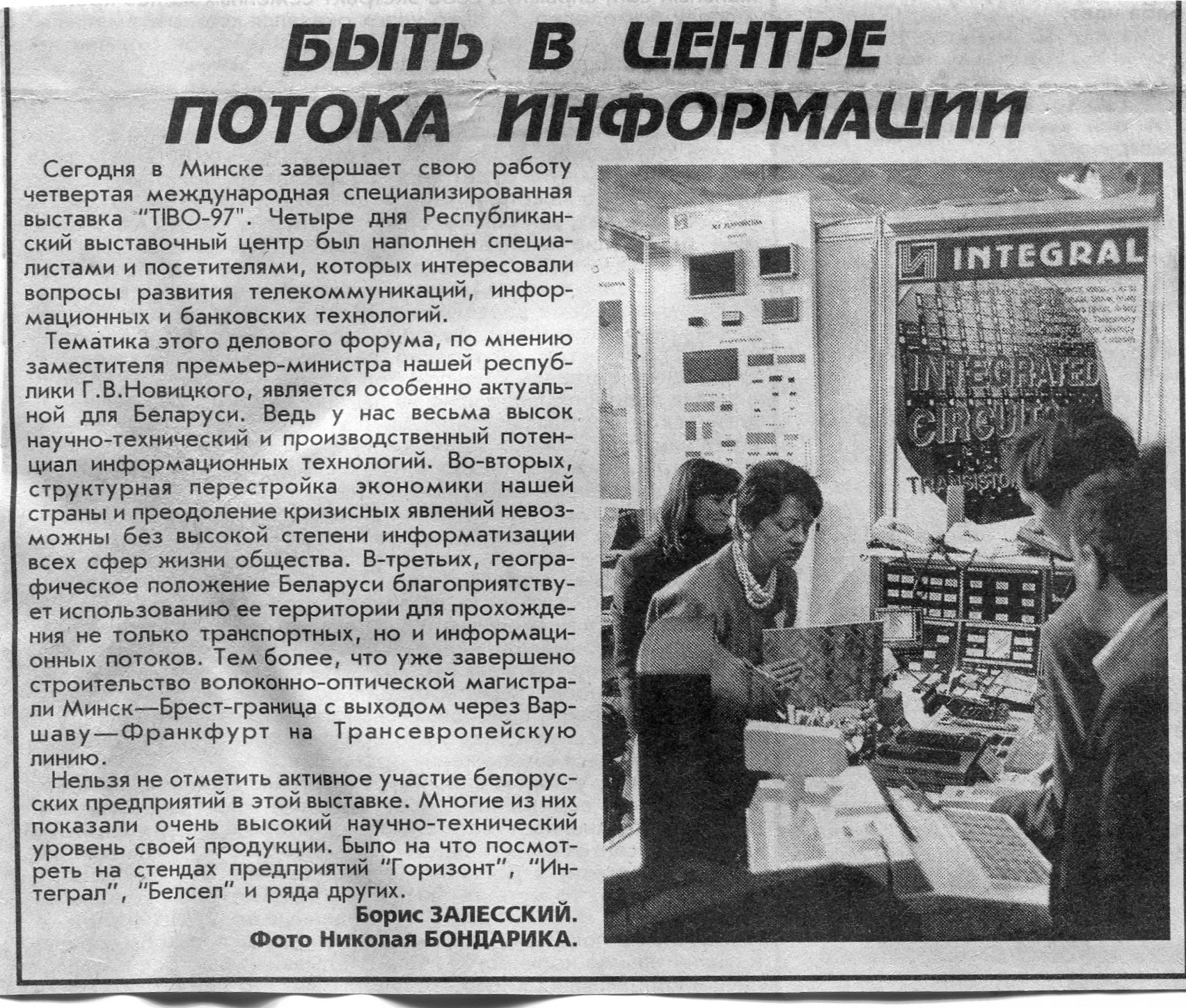 Залесский, Б. Быть в центре потока информации / Б. Залесский // Вечерний Минск. - 1997. - 30 мая.